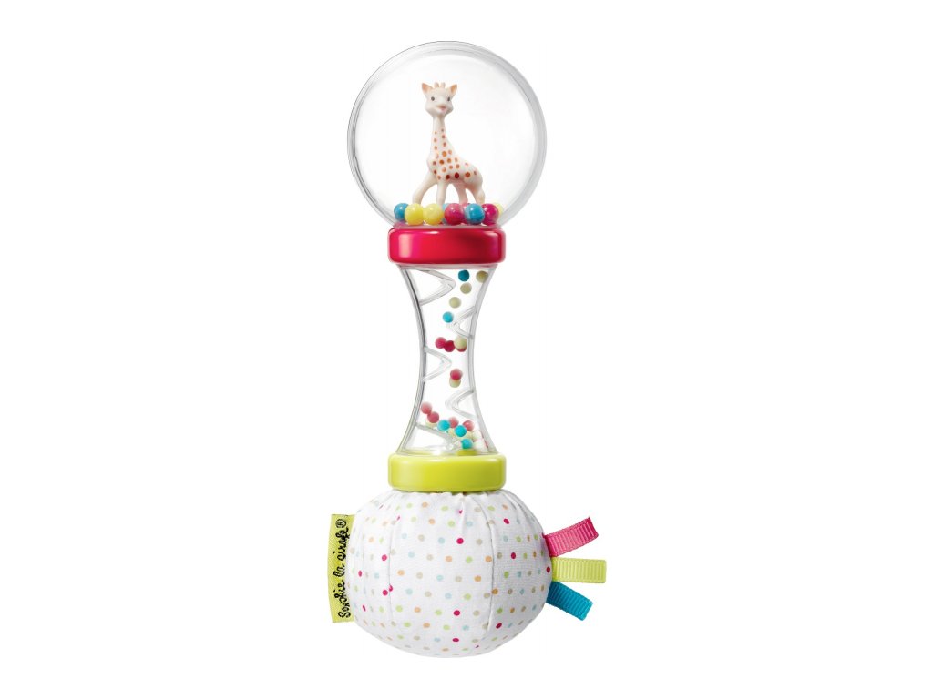 Zábavná hračka - dítě zatřese a pozoruje a poslouchá různobarevné kuličky točící se kolem žirafky Sophie.