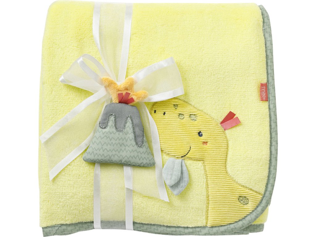 Jemná měkká plyšová deka slouží jako přikrývka a mazlivý kamarád v jednom. Je vhodná jako vložka do ohrádky, do kočárku i do postýlky. Dobře izoluje chlad, lze ji tedy použít i jako hrací podložku. Hřeje a zároveň dodává pocit komfortu a bezpečí. Veselý motiv dinosaura z deky dělá nepostradatelného pomocníka na doma i na cesty.