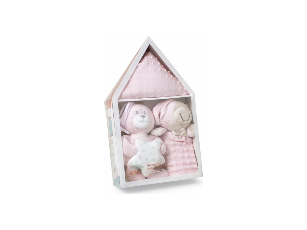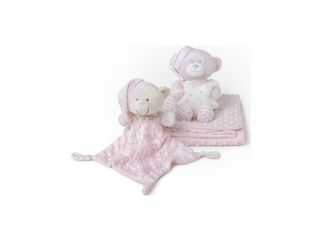 INTERBABY | Deka měkká kuličky + přítulka + medvídek - RŮŽOVÁ