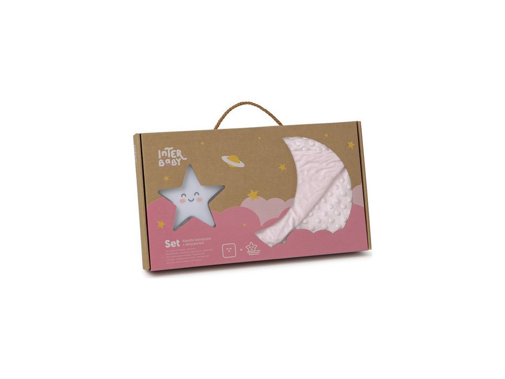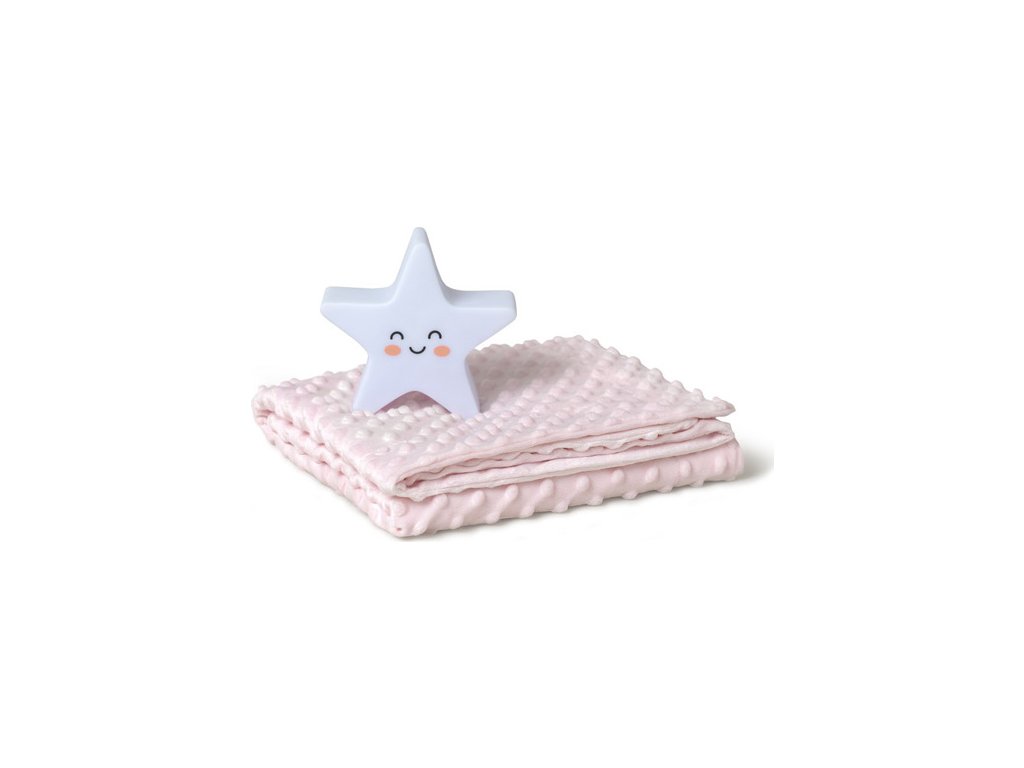INTERBABY | SET Deka měkká KULIČKY 80x110 + lampička HVĚZDA - růžová