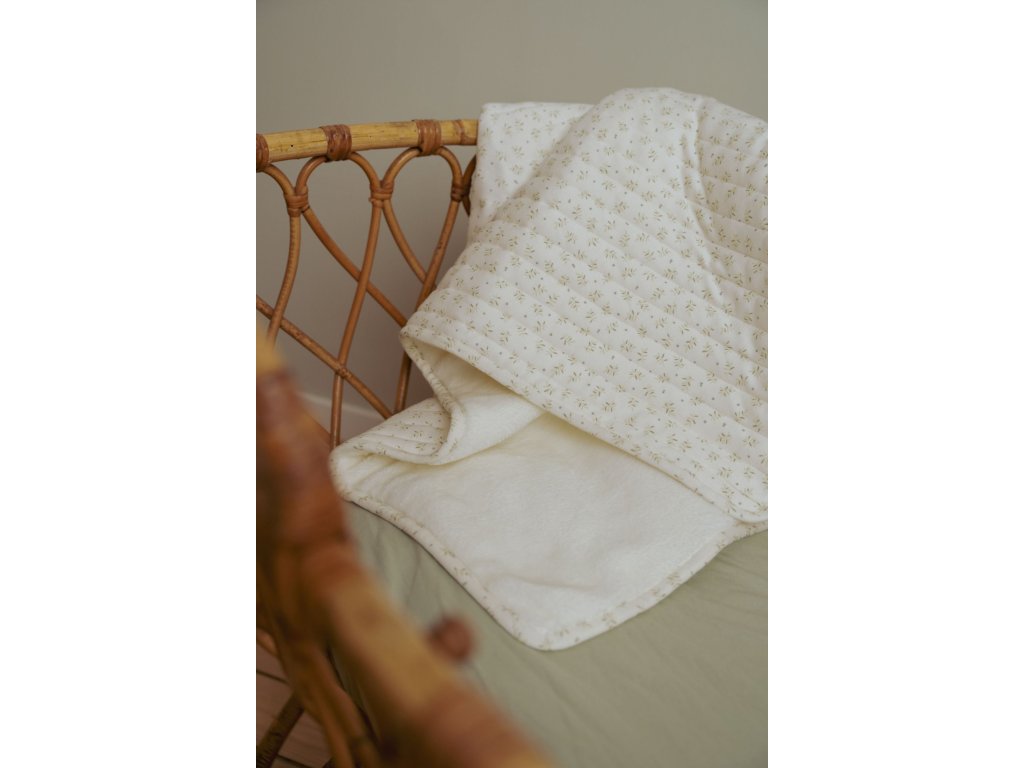 Deka má na jedné straně jemnou 100% bavlnu s potiskem lístků, z druhé strany měkký, teplý plyš pro udržení miminka v teple.