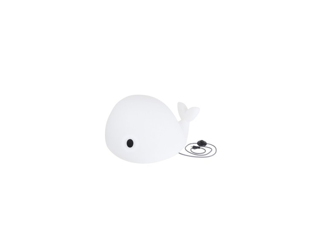 Lampička ve tvaru velryby Flow zapínání a vypínání pomocí spínače odolný materiál, díky kterému na velrybě mohou děti sedět rozměr: 68 x 48 x 42 cm