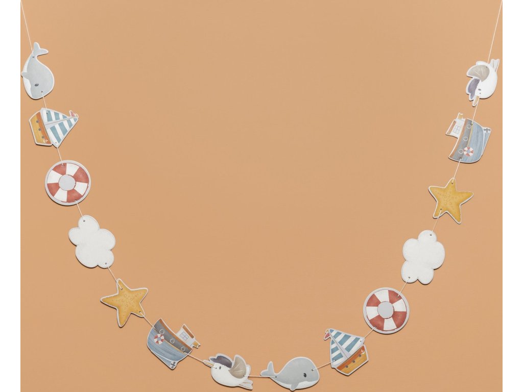 Girlanda je součástí designové kolekce Little Dutch Námořnický záliv, ve které najdete ložní prádlo, dekorativní doplňky do dětského pokoje, dřevěné a plyšové hračky i jídelní doplňky pro dětské stolování.