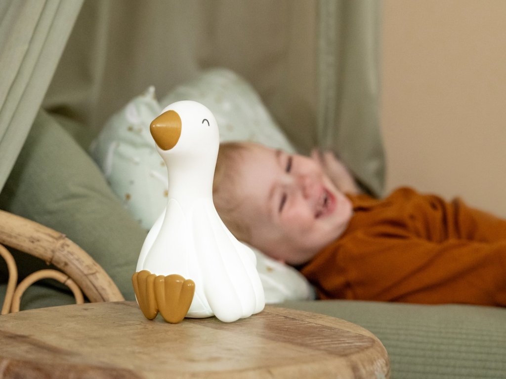 Noční lampička v podobě roztomilé husy je ideální pro klidné usínání vašeho dítěte. Lampička s jemným LED světlem funguje s bateriemi a je tak snadno přenosná. Její ovládání je velmi jednoduché, stačí ji jen zapnout. Pro úsporu baterií se světlo po 12 minutách automaticky vypne.
