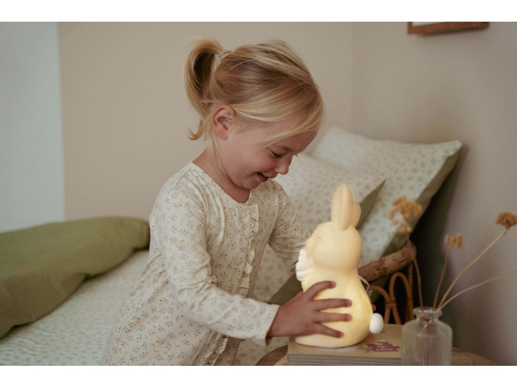 Noční lampička v podobě roztomilého králíčka je ideální pro klidné usínání vašeho dítěte. Lampička s jemným LED světlem funguje s bateriemi a je tak snadno přenosná. Její ovládání je velmi jednoduché, stačí ji jen zapnout. Pro úsporu baterií se světlo po 12 minutách automaticky vypne.