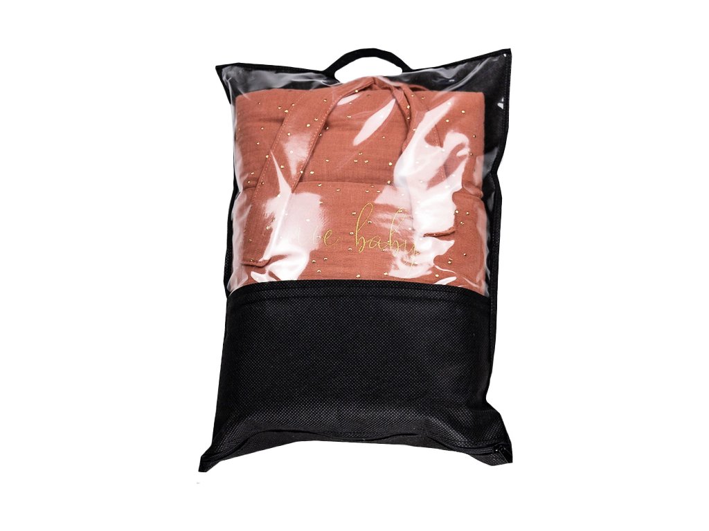 Kapsář na postýlku z mušelínu má tři prostorné úložné kapsy na ukládání hraček, deček, dudlíků a dalších nezbytností, jako jsou plenky nebo vlhčené ubrousky. Kapacita kapsy je 4- 8 plenek. Místo na vše, co chcete mít po ruce. Pomocí tří horních mašlí ho snadno zavěsíte kamkoliv. Celkové rozměry 60x30 cm.
