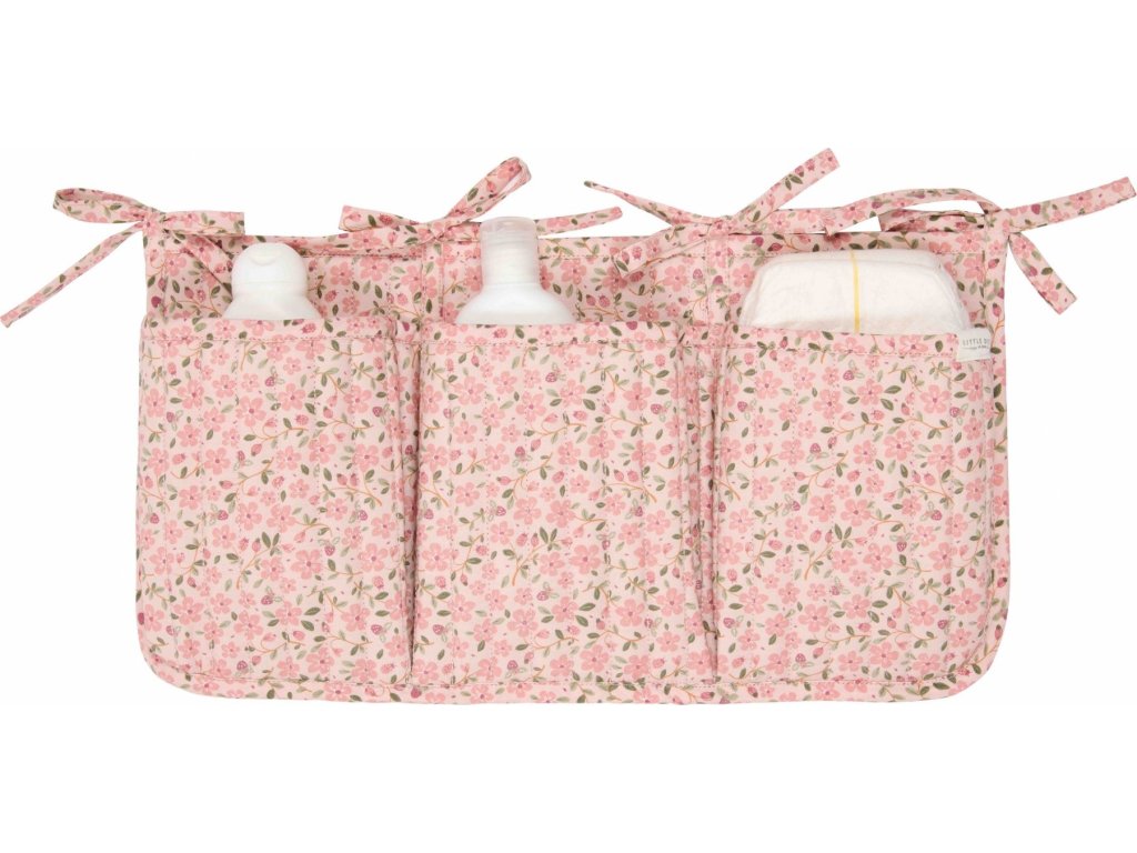 Praktický závěsný organizér v krásném provedení s květinovým potiskem vám umožní mít vše potřebné pro péči o vaše miminko vždy po ruce. Organizér ze 100% organické bavlny nabízí tři prostorné kapsy pro uložení dudlíků, bryndáčků, plen, ubrousků, hraček apod. Pomocí praktických vázacích šňůrek jej snadno připevníte k přebalovacímu pultu, na stěnu či na postýlku.