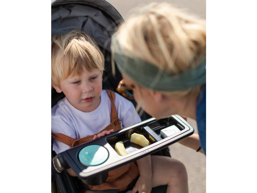 Díky pultíku na svačinu Joolz má váš malý miláček vždy po ruce občerstvení, nápoje i hračky. Pultík se jednoduše nasadí na místo předního madla.
