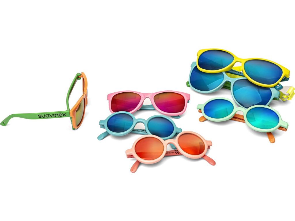 Kolekce slunečních brýlí Suavinex propojuje zdraví s módou, což je jeden z charasteristických znaků odborníků na kojenecký sortiment péče o děti. Jednak se jedná o produkt zaměřený na prevenci, protože čočky brýlí jsou polarizované s UV400 filtrema jednak obsahuje lehké flexibilní obroučky, které se přizpůsobí dětskému obličeji.