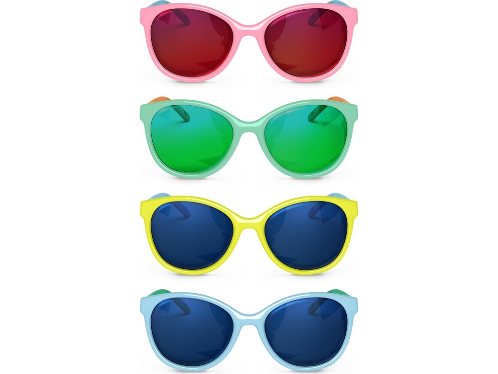 Důkaz, že být trendy není v rozporu s důrazem na bezpečnost, je ztělesněn v této nové kolekci stylových brýlí. Plastové ohebné obroučky ve velké barevné škále lze kombinovat s oblečením dětí a barevné čočky se zrcadlovým efektem jsou prakticky nerozbitné. Dostupné ve třech velikostech (12-24m, 24-36m, +36 měsíců), kdy každá z nich splňuje konkrétní požadavky v každé fázi vývoje dětí. Všechny mají společný rys, kterým je jejich kulatý nebo hranatý tvar pro lepší přizpůsobení, protože v raném věku není kořen nosu dětí ještě zcela vytvořen. S jakýmikoli brýlemi z této kolekce mohou děti běhat a skákat bez obav, že se jejich brýle rozbijí. Mají také další bezpečnostní prvky, především pro velikosti +36 měsíců, které jsou doplněny o šňůrku, která perfektně sedí na hlavě.