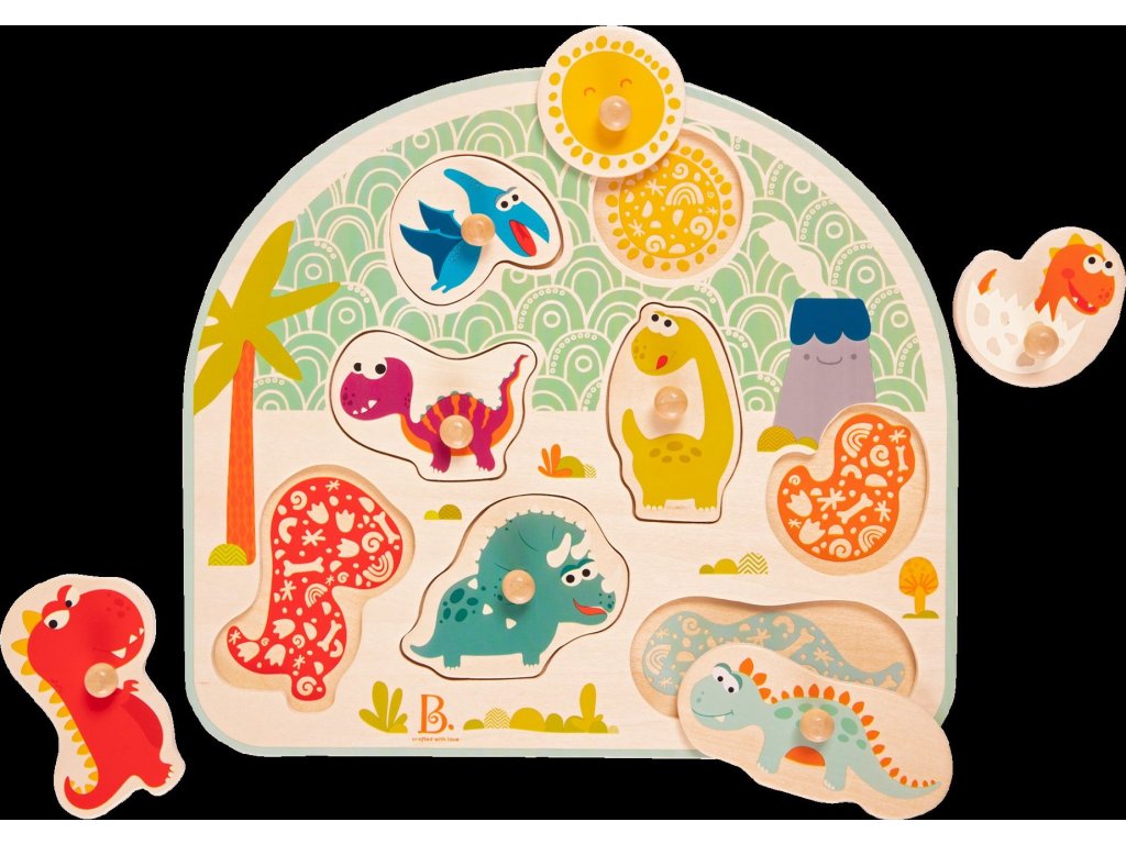 B-Toys Puzzle dřevěné s úchyty Dinosaurus