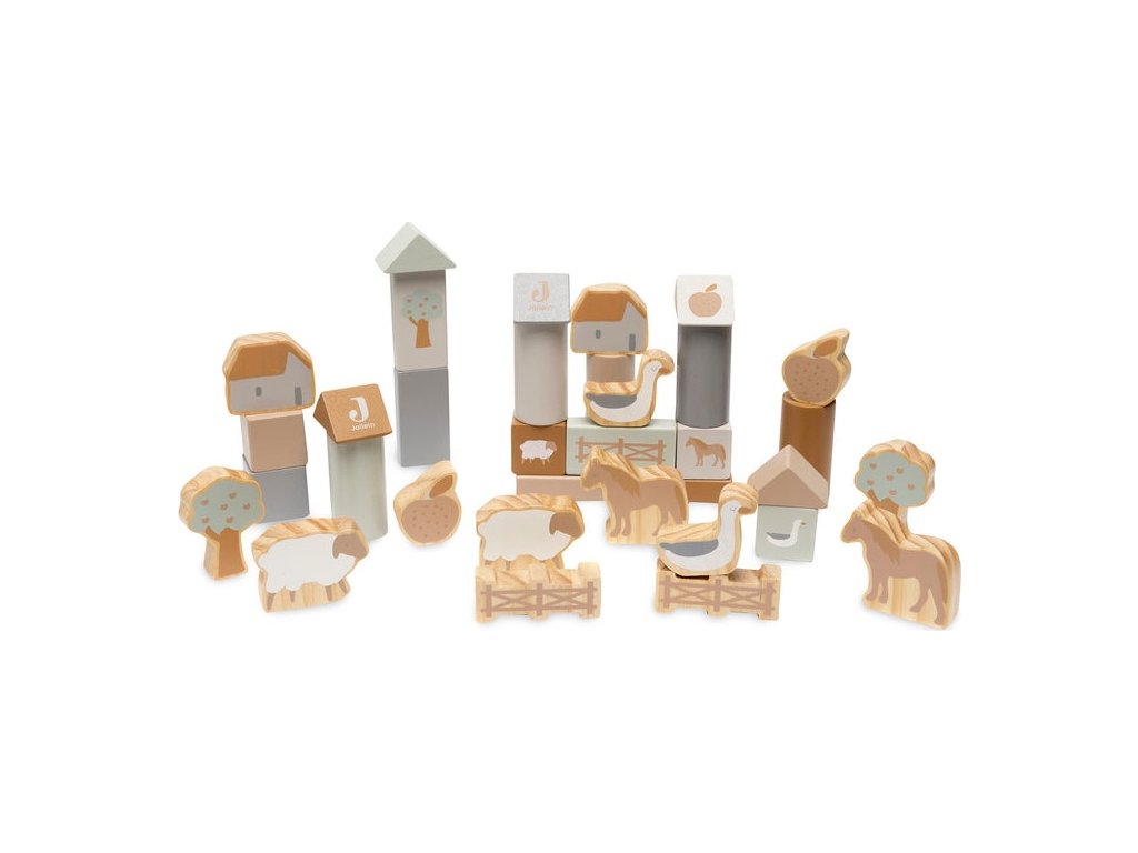 Jollein Kostky dřevěné 34 ks v tubě Farma