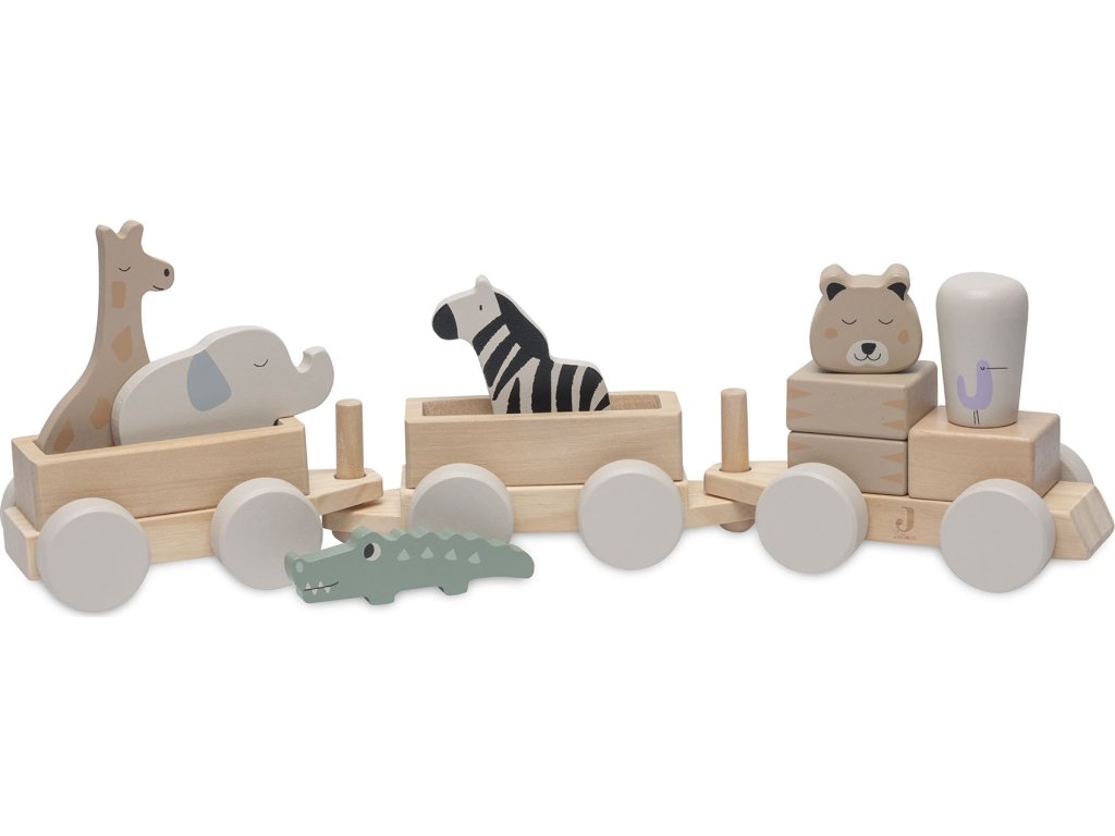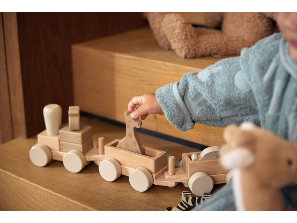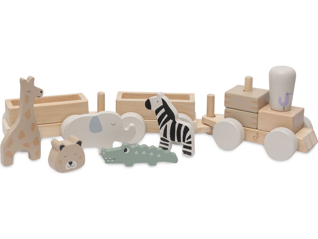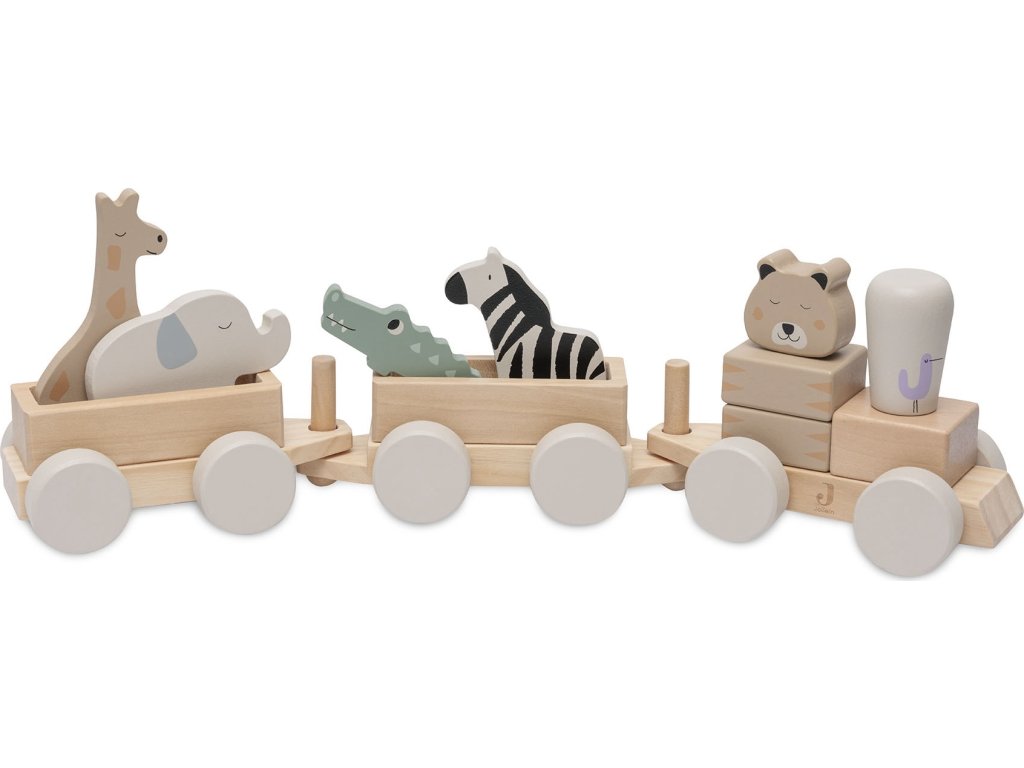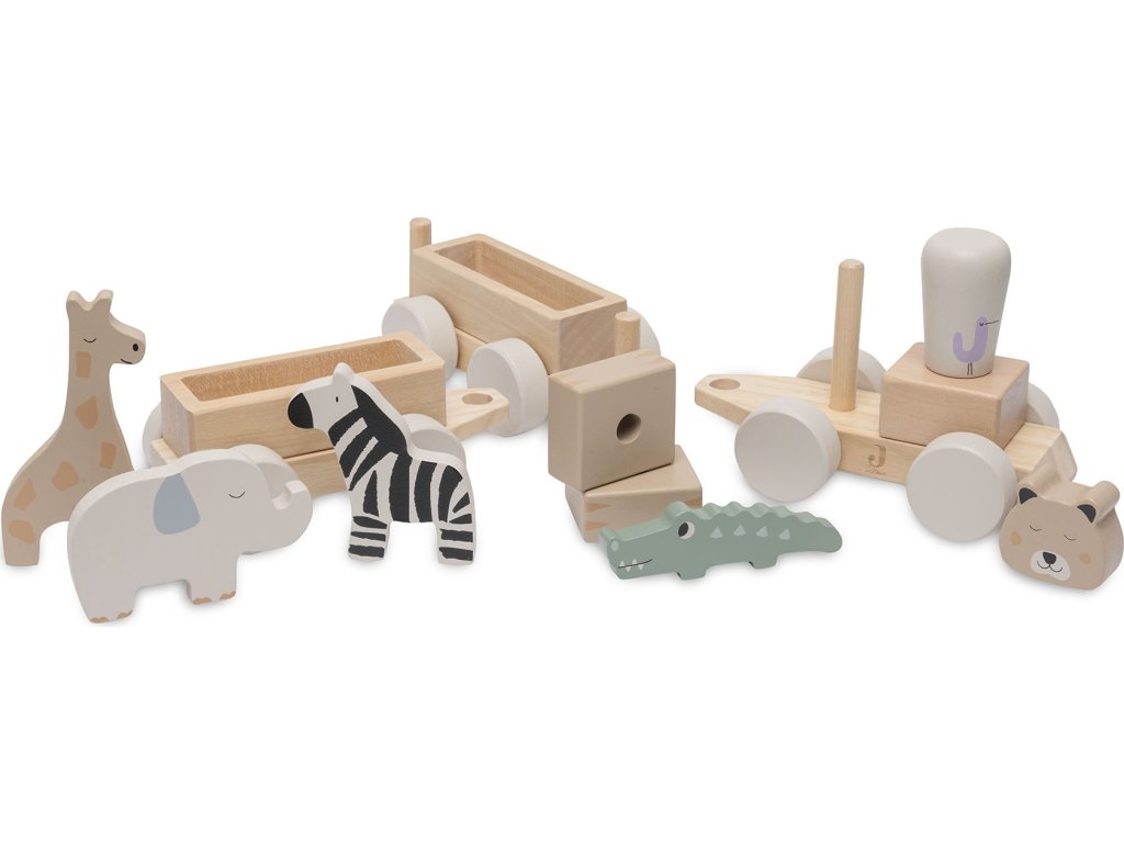 Dřevěný vláček se dvěma vagóny, čtyřmi zvířátky z džungle a strojvedoucím v podobě geparda zajistí vašemu dítěti hodiny kreativní zábavy. Vláček v krásném dřevěném provedení bude sloužit i jako originální dekorace v dětském pokoji.