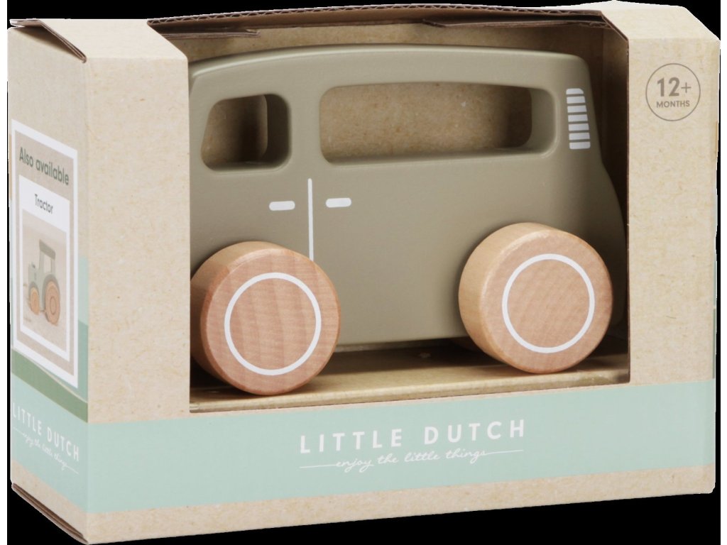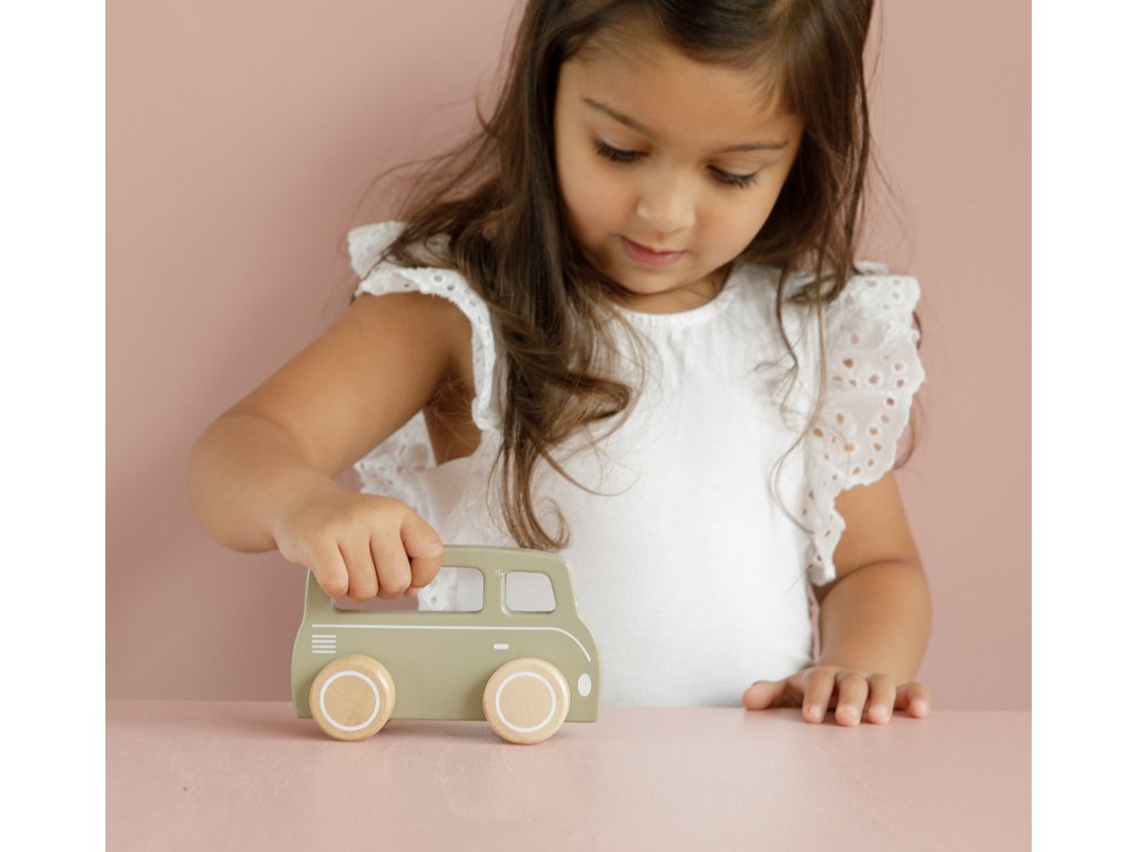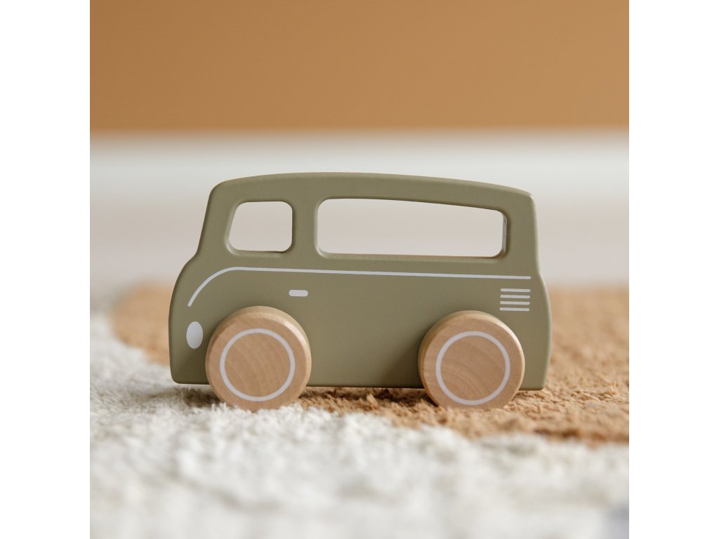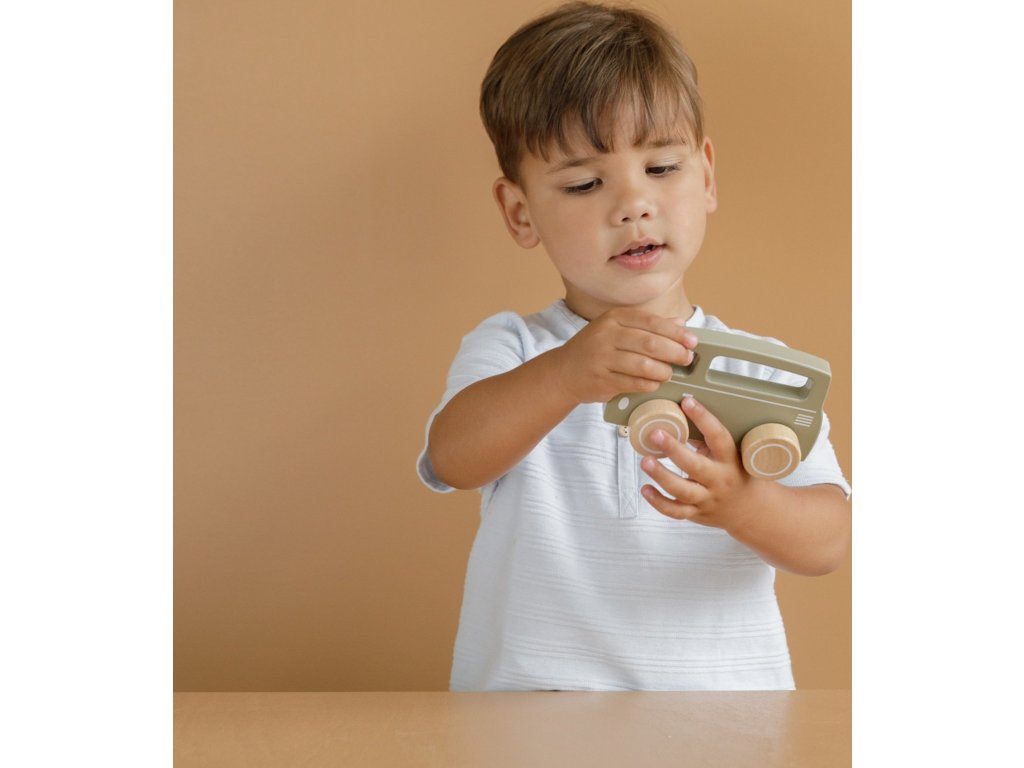 Dřevěná dodávka v krásné olivové barvě s robustními dřevěnými koly má tvar pro snadné držení a může se tak stát prvním autíčkem vašeho dítěte. Není však sama! Má další dva kamarády: brouka a sporťák. Autíčka brouk a sporťák se prodávají samostatně.