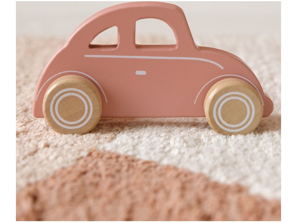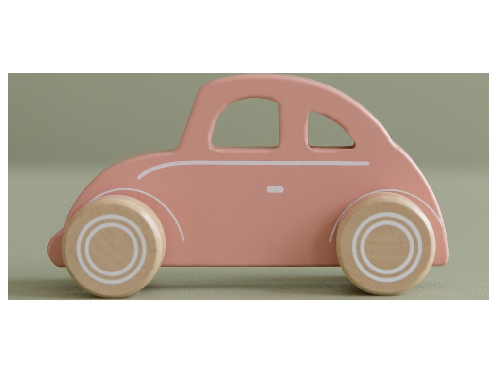 Vrum vrum! Rozkošné růžové auto je připraveno vyrazit. Dřevěné odolné autíčko má tvar pro snadné držení a může se tak stát prvním autíčkem vašeho dítěte. Rádo jezdí na výlety se sporťákem a dodávkou. Autíčka sporťák a dodávka se prodávají samostatně.