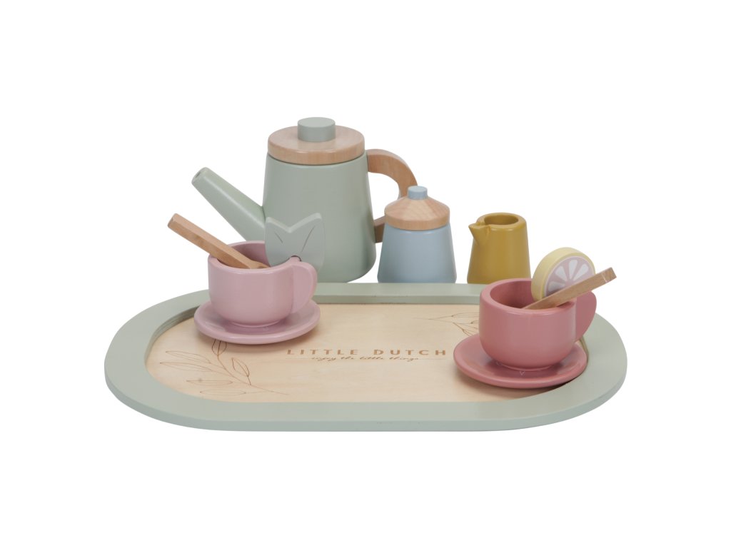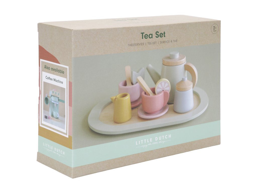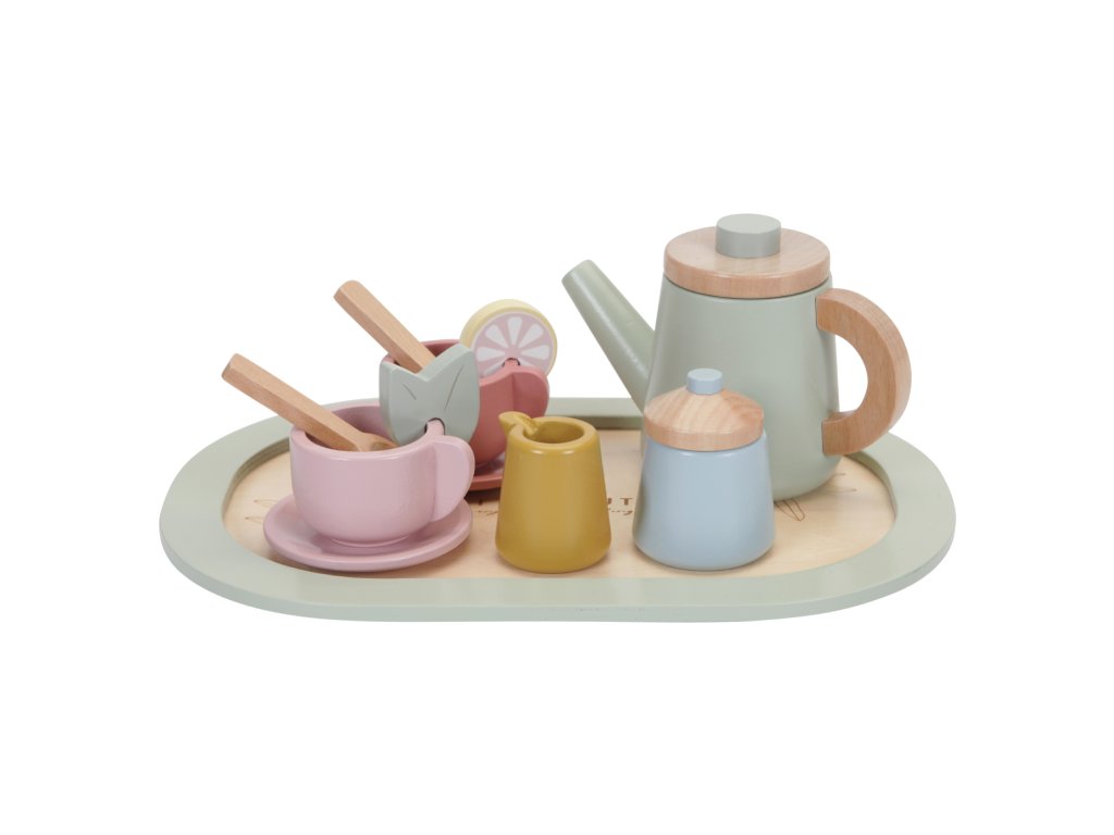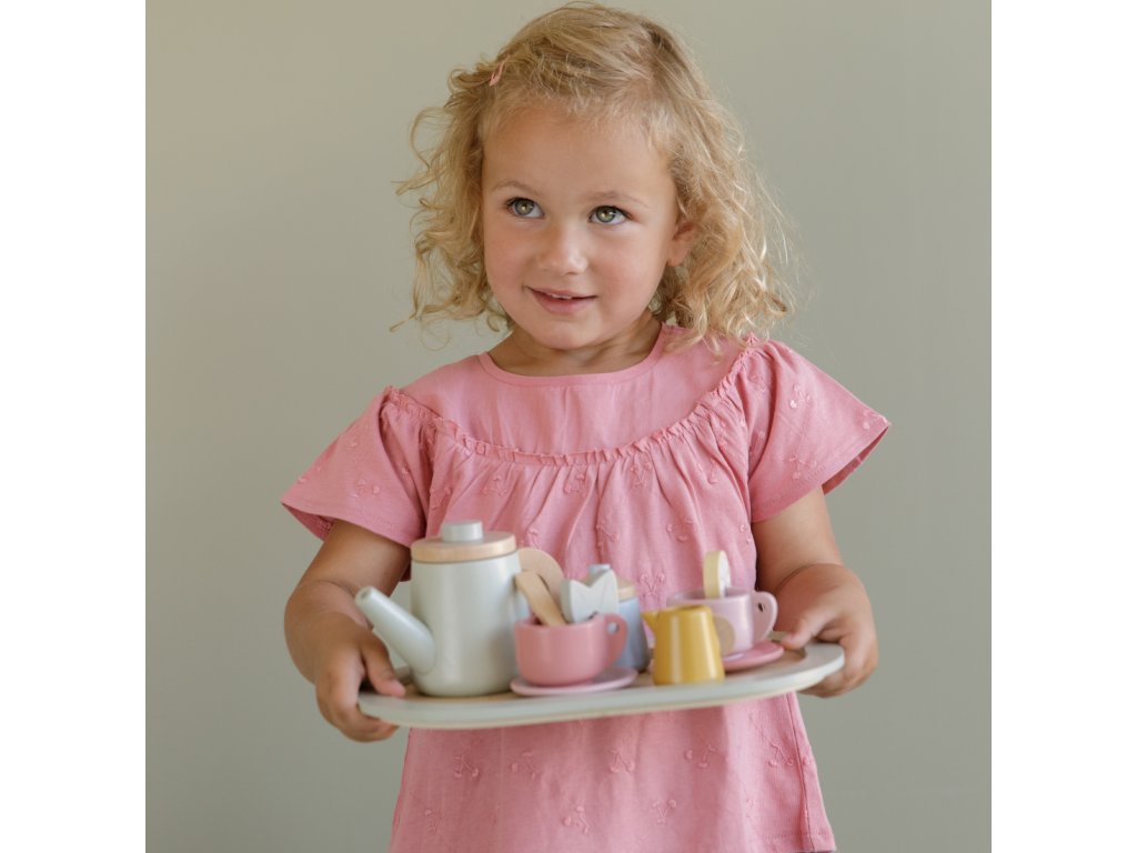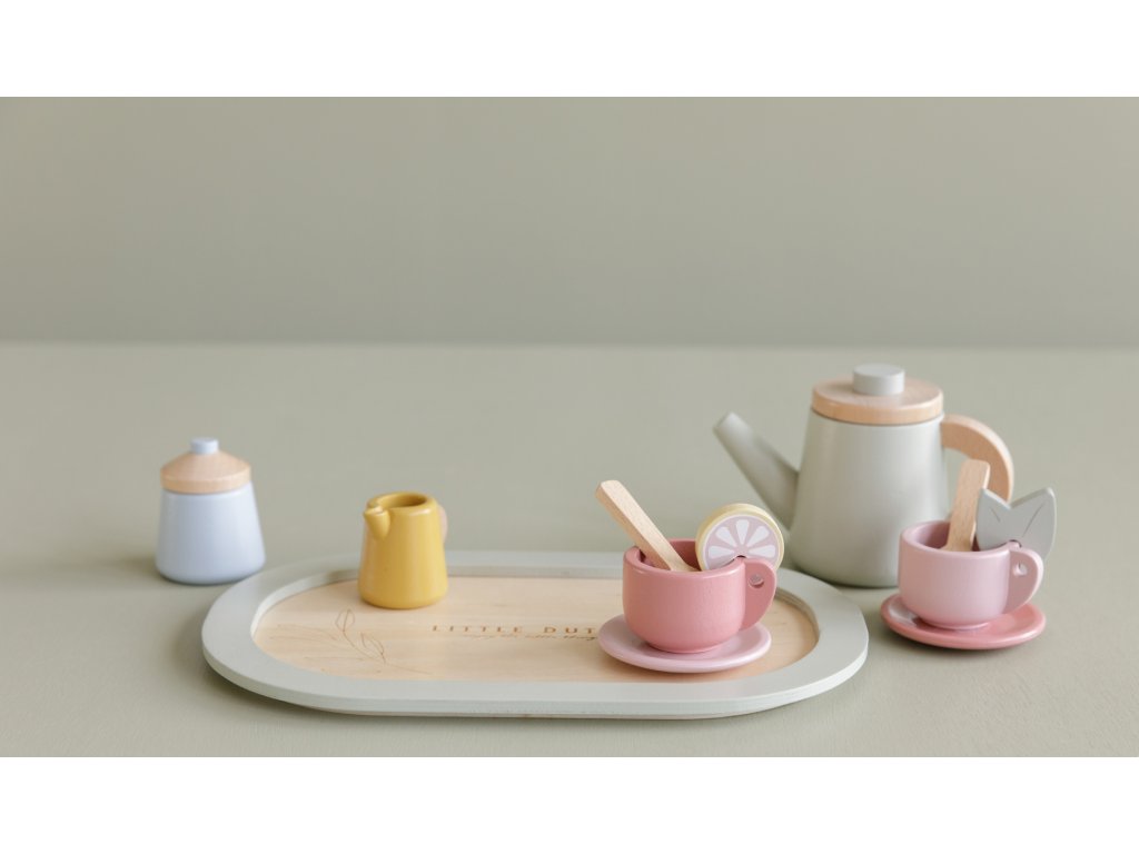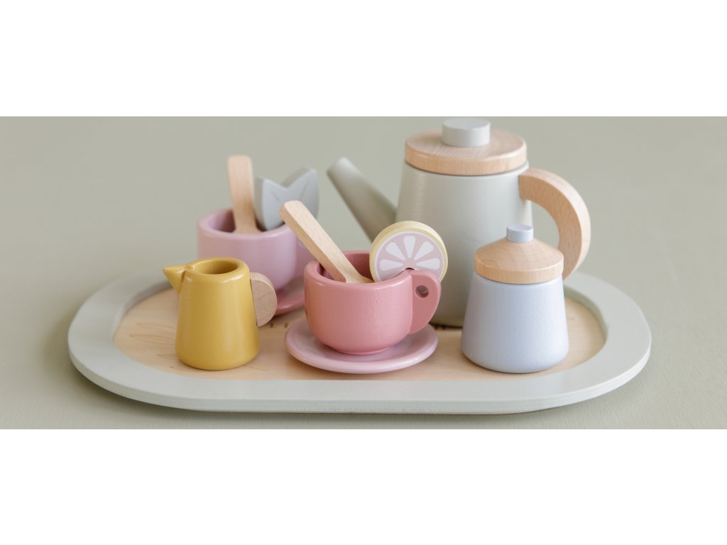 Dáte si čaj? S touto roztomilou dřevěnou čajovou soupravou může vaše ratolest podávat šálek lahodného čaje s mlékem, cukrem nebo plátkem citronu či snítkou máty. Máte všechny ingredience pro zábavné čajové odpoledne s přáteli.
