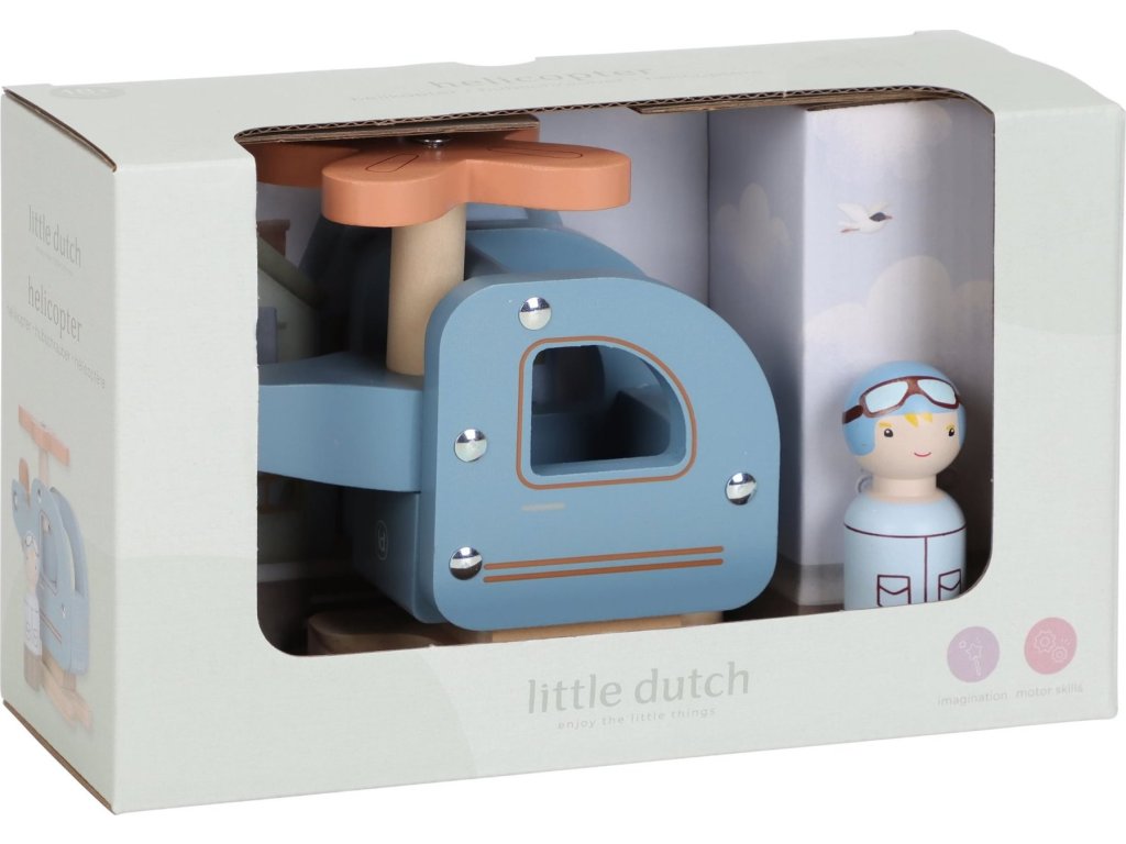 Pilot vrtulníku je připraven vzlétnout kdykoli bude potřeba! Vrtulník v krásném dřevěném provedení má tvar pro snadné uchopení i pro nejmenší ruce. Nadčasová hračka, která rozvíjí fantazii i jemnou motoriku.