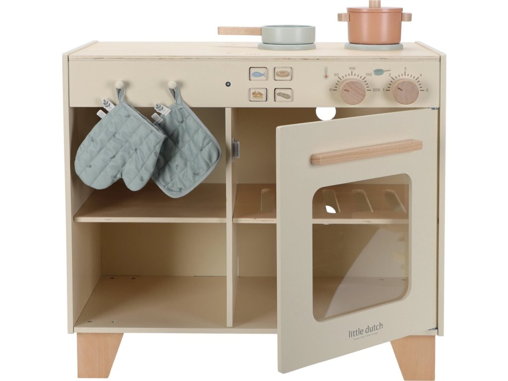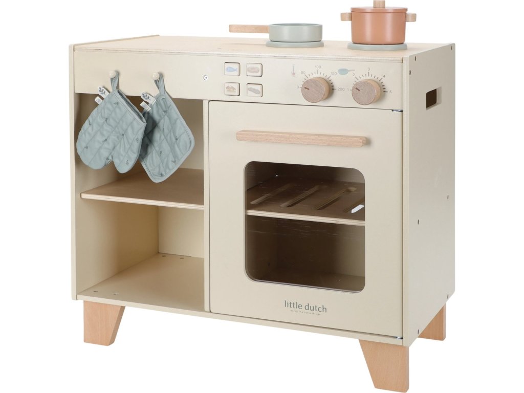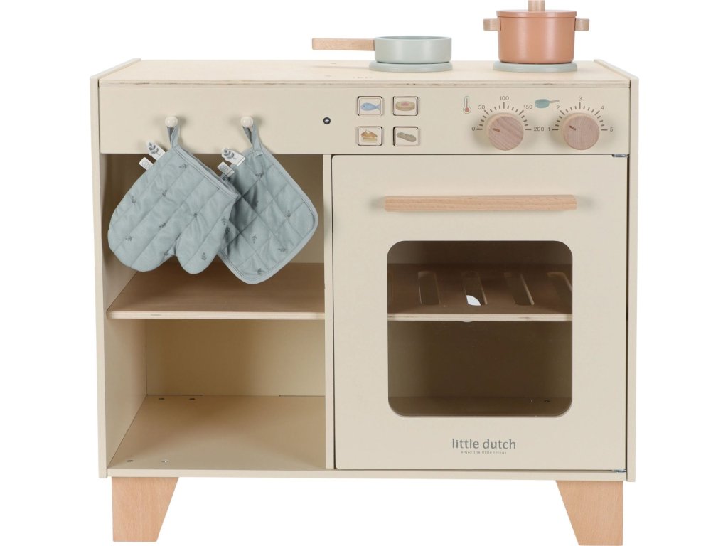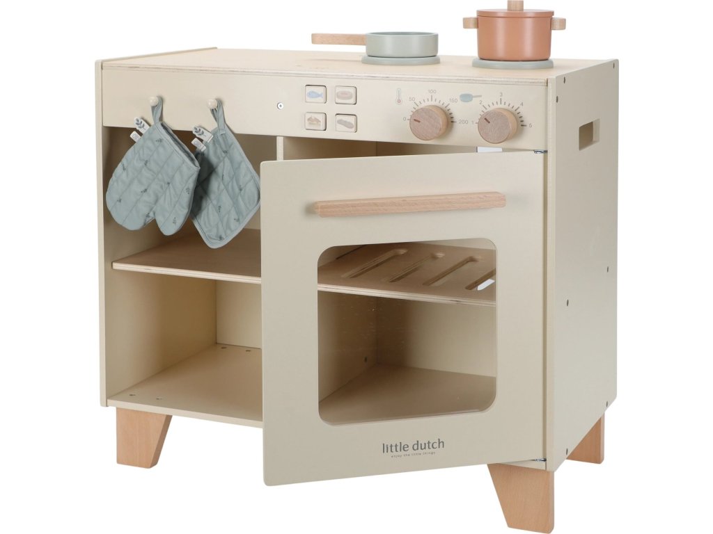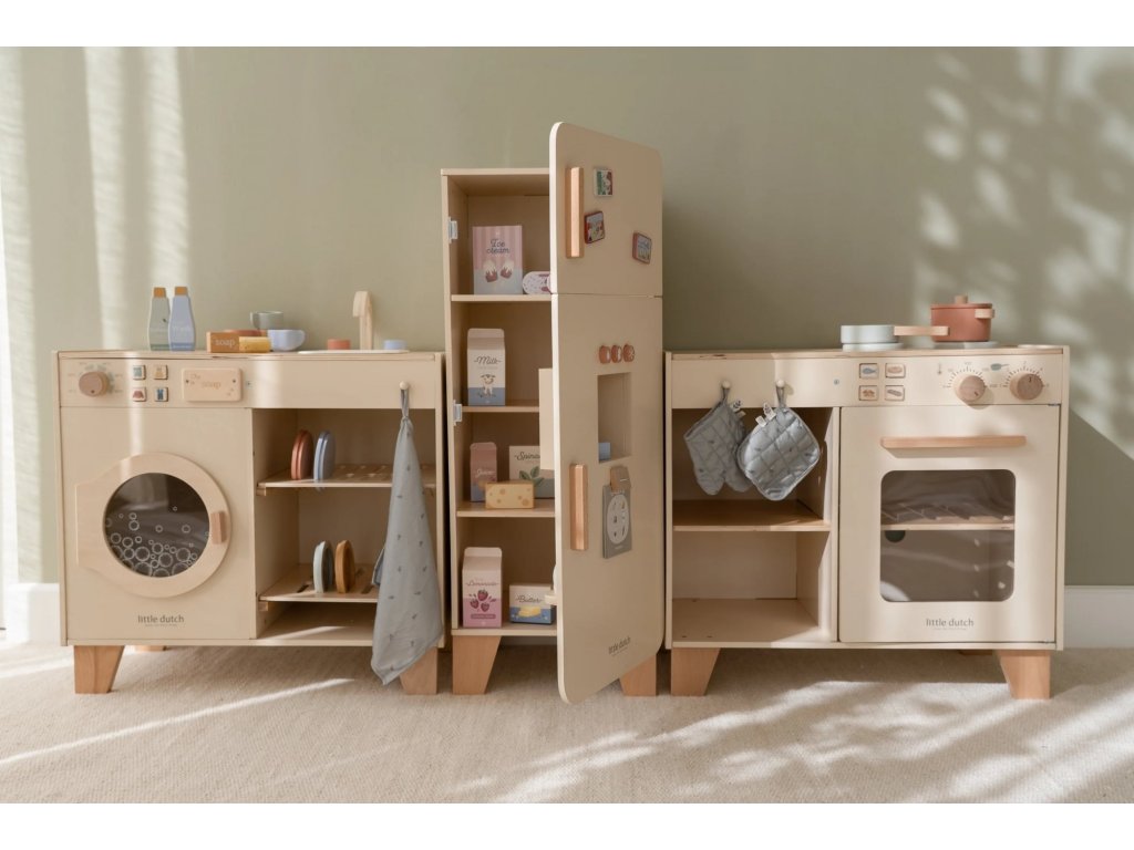 Díky možnosti kombinace s lednicí nebo pračkou z kolekce dřevěných hraček Little Dutch lze vytvořit plně vybavenou herní kuchyň. Tu pak můžete doplnit dalšími dřevěnými hračkami Little Dutch, např. kávovarem, toustovačem, kuchyňskou váhou, krájecím ovocem, krájecí zeleninou, čajovým servisem apod.