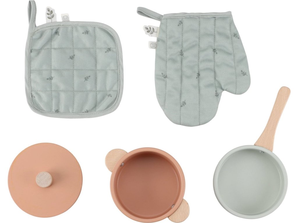 Krásná dřevěná kuchyňka Little Dutch s realistickými detaily nabízí vše, o čem malý kuchař či kuchařka sní, když vymýšlí nové recepty pro rodinu či své panenky a oblíbené plyšáky. Vaření i pečení dostává díky otočným tlačítkům s ilustracemi autentický nádech. K dispozici jsou dvě pánvičky a dvě chňapky.