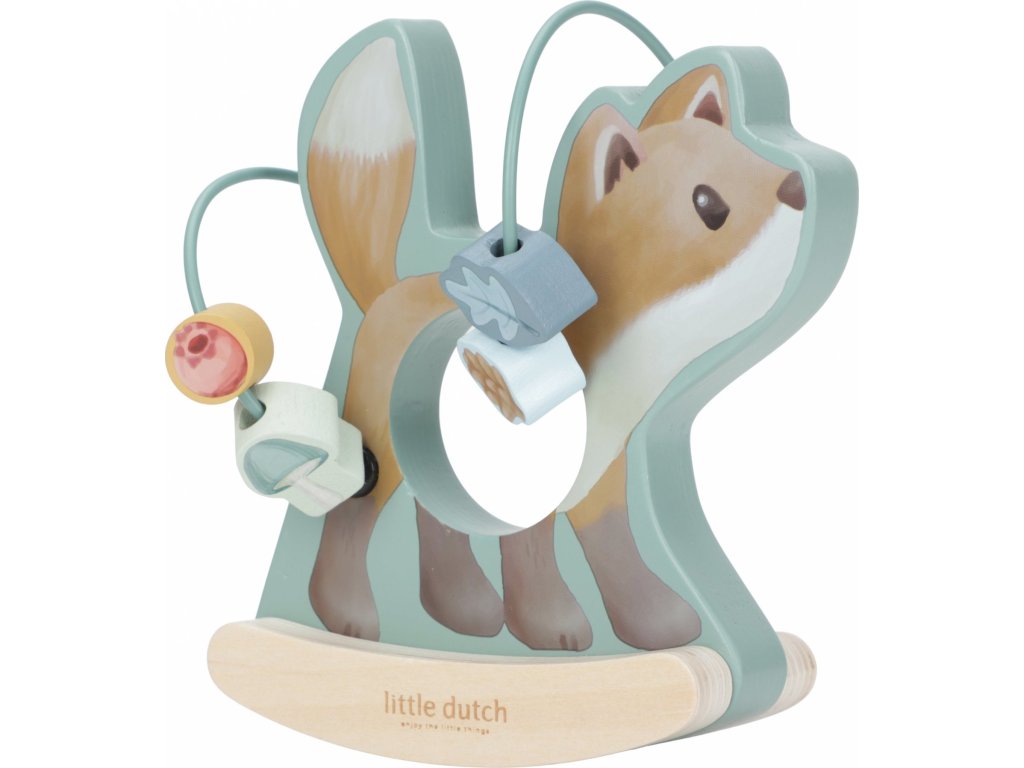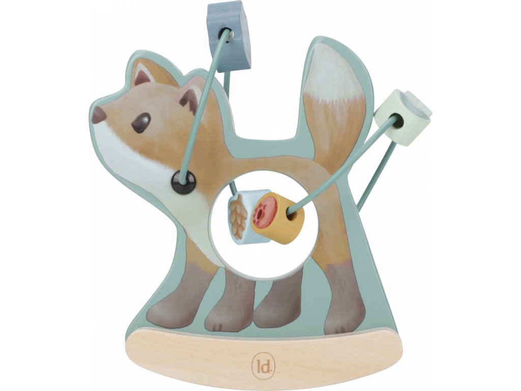 Dřevěná hračka v podobě něžné lišky se po postavení na podlahu či stůl jemně houpe a přitom se kolem ní na spirále pohybují posuvné dřevěné korálky s potiskem houbičky, šišky, lístku a brusinky. Hračka je ideální pro rozvoj koordinace ruka / oko dítěte slouží i jako krásná dekorace v dětském pokoji.