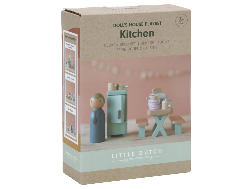 Sada s vybavením kuchyně v dřevěném provedení je vhodným doplňkem dřevěného domečku Little Dutch.