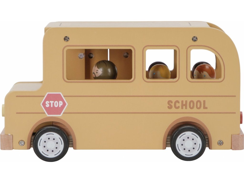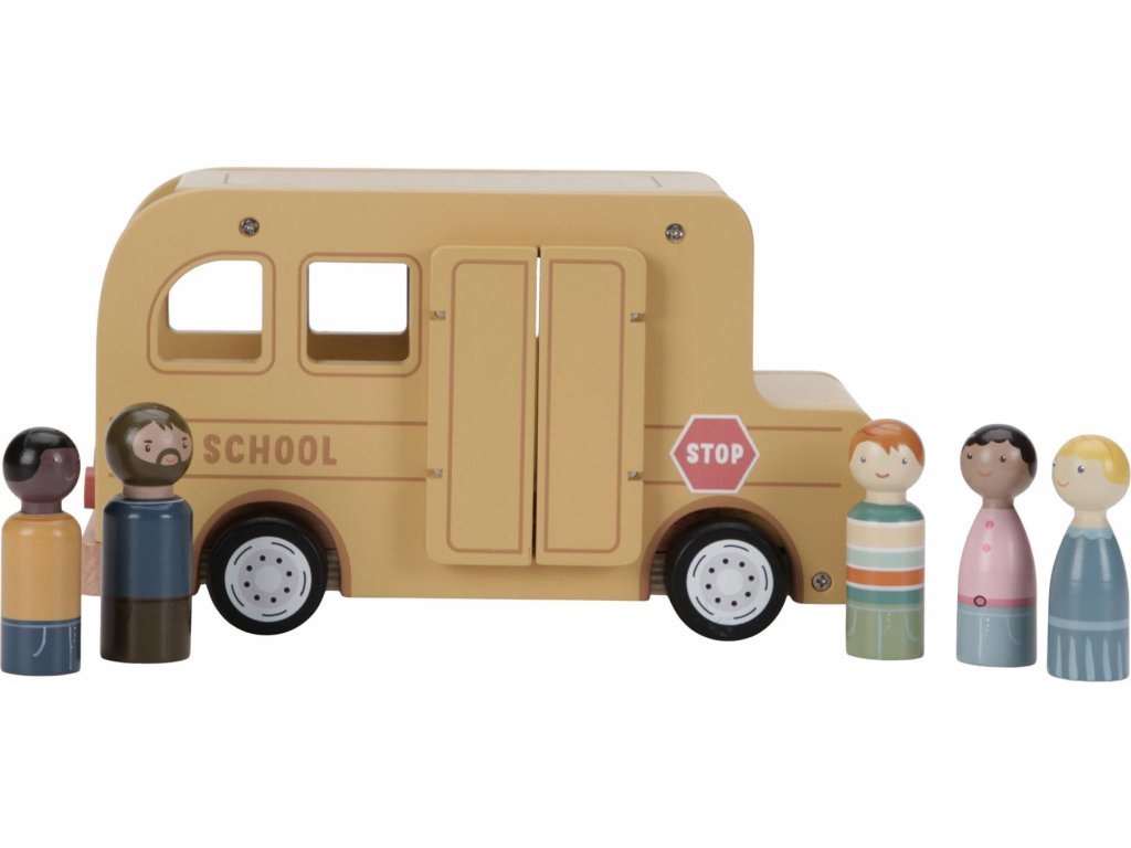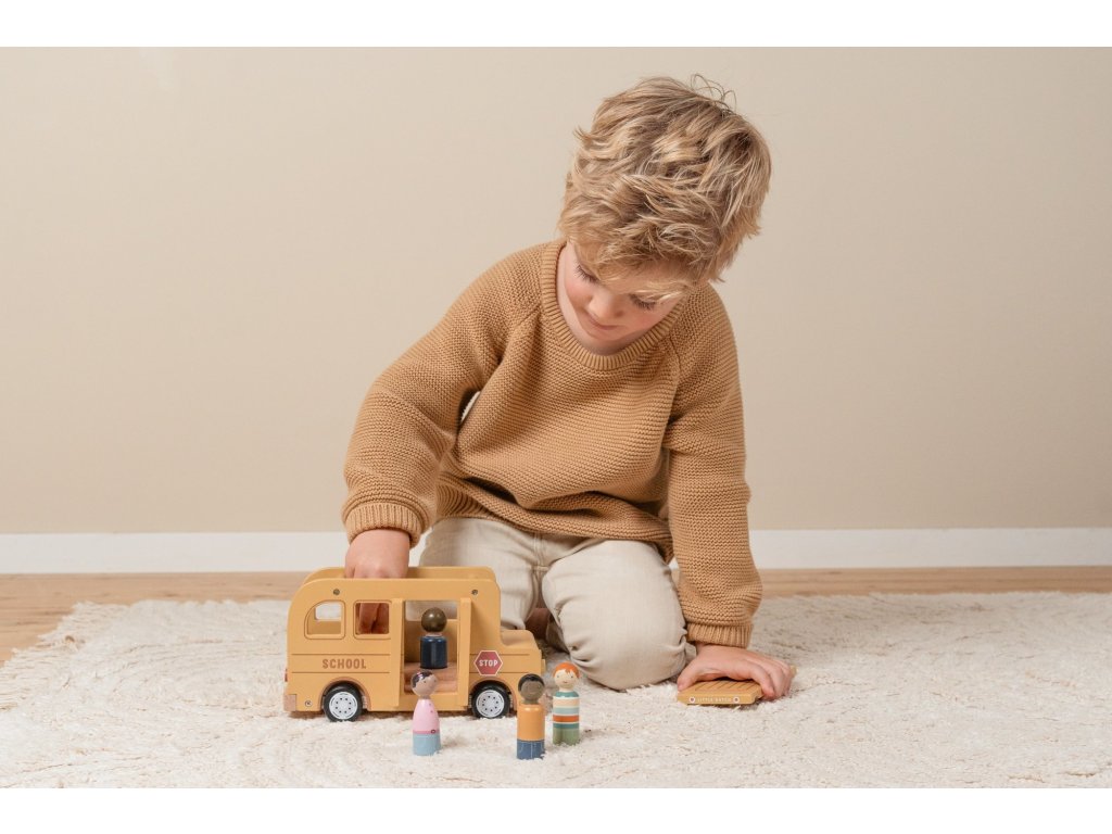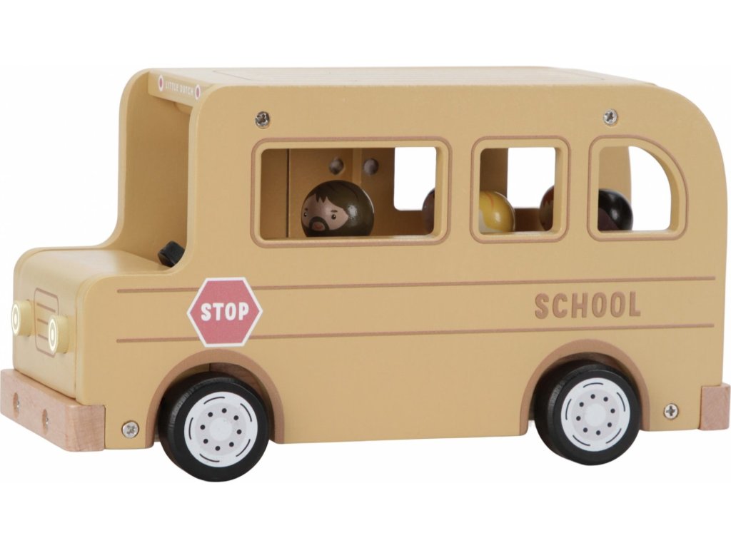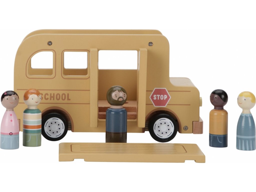 Školní autobus v kvalitním dřevěném provedení má odnímatelnou střechu a otevírací dveře, aby bylo možné dovnitř posadit školáky a řidiče. Jakmile jsou všichni cestující usazeni, řidič může nastartovat a vydat se na cestu do školy!