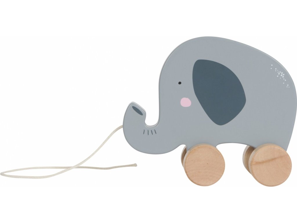 Slon na kolečkách v krásném dřevěném provedení má šňůrku, aby ho dítě mohlo tahat za sebou.