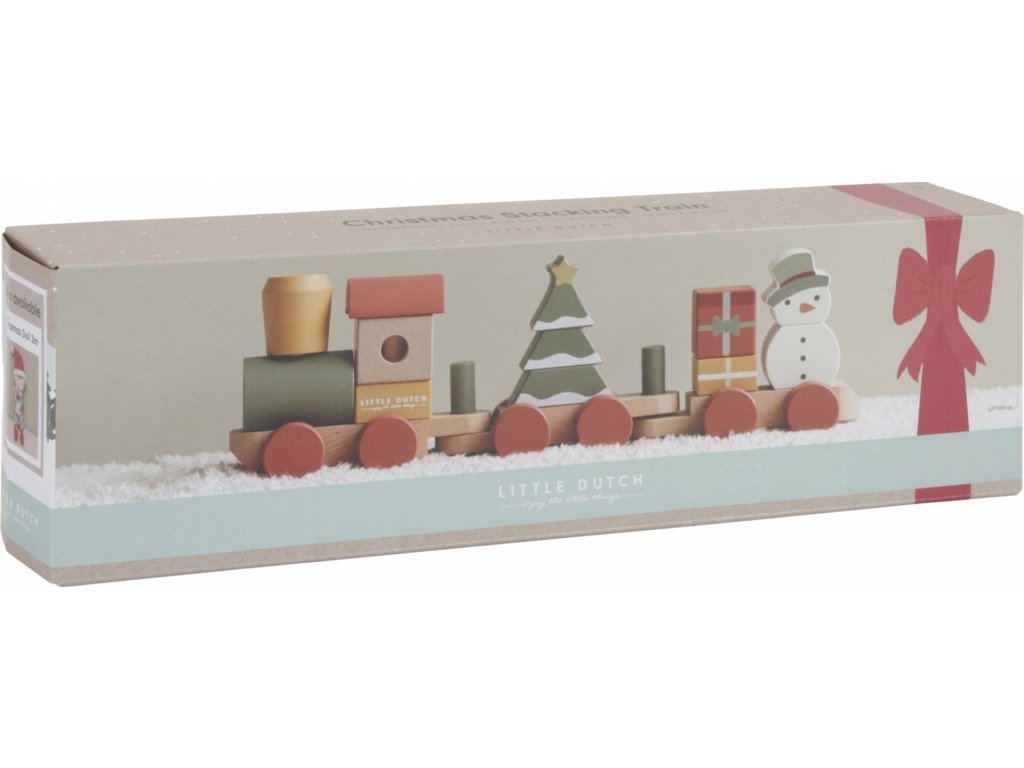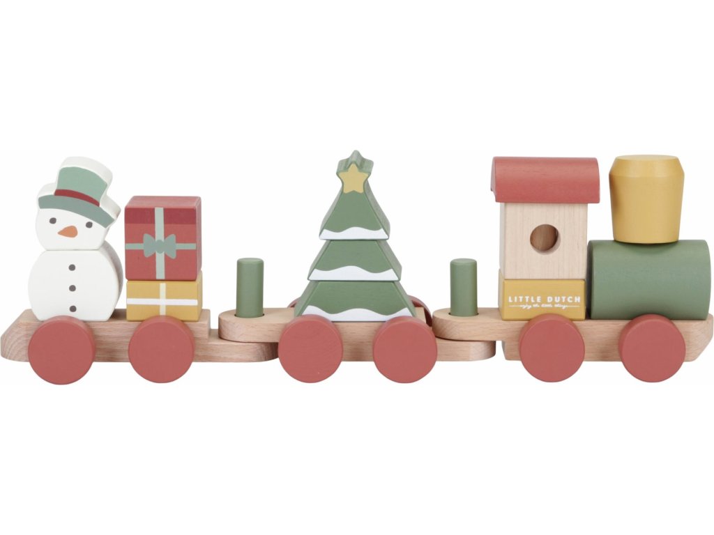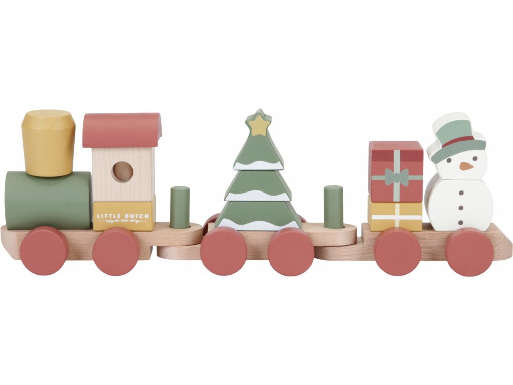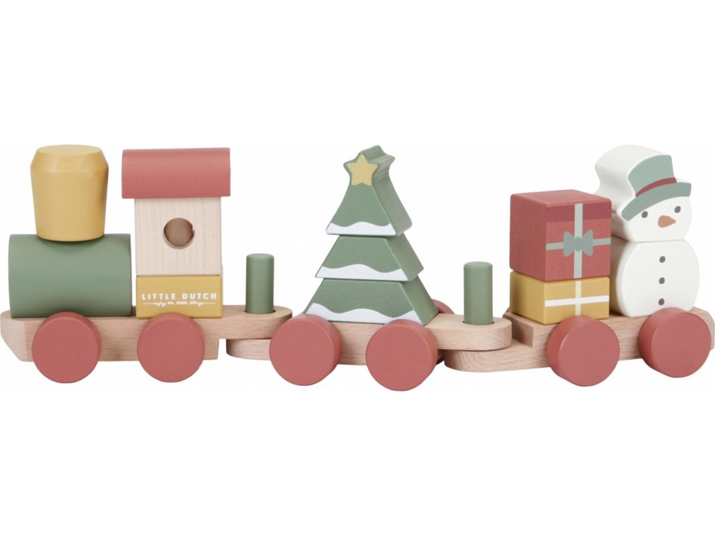 Speciální vánoční edice dřevěného vláčku z dílny Little Dutch. Vláček se skládá z kostek různých tvarů a barev s vánočními motivy, s jejichž pomocí může vaše dítě sestavovat různé varianty vagónů.