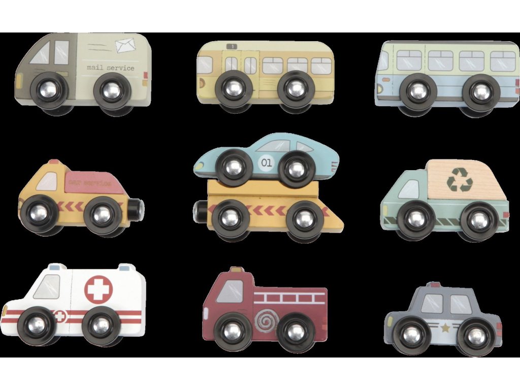 Dřevěné užitkové a záchranné vozy jsou oblíbeným doplňkem hodí k Little Dutch dřevěné vláčkodráze XXL. Vozidla jsou vhodná pro jízdu po kolejích a poskytují tak asistenci tam, kde jsou ve městě potřeba. Dřevěné kolejnice nejsou součástí setu.