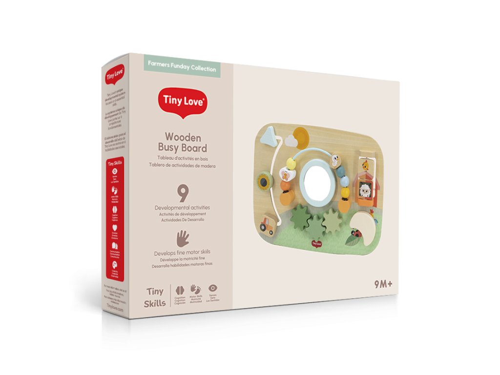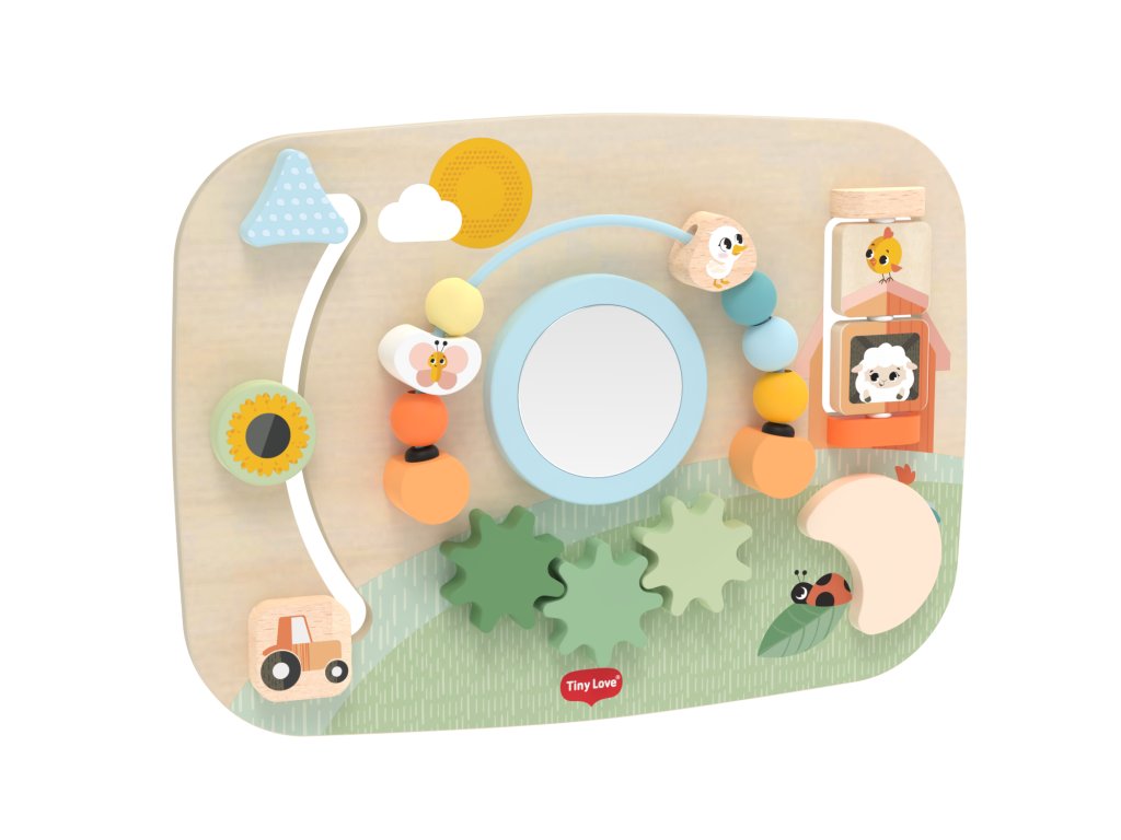Dřevěný pult s aktivitami Tiny Love je hračka plná pohyblivých prvků, která podporuje objevování, soustředění i první logické uvažování. Pult je navržený tak, aby rostl s dítětem: hodí se pro hru na bříšku, vsedě i ve stoje, a je tak využitelný v různých vývojových fázích dítěte.