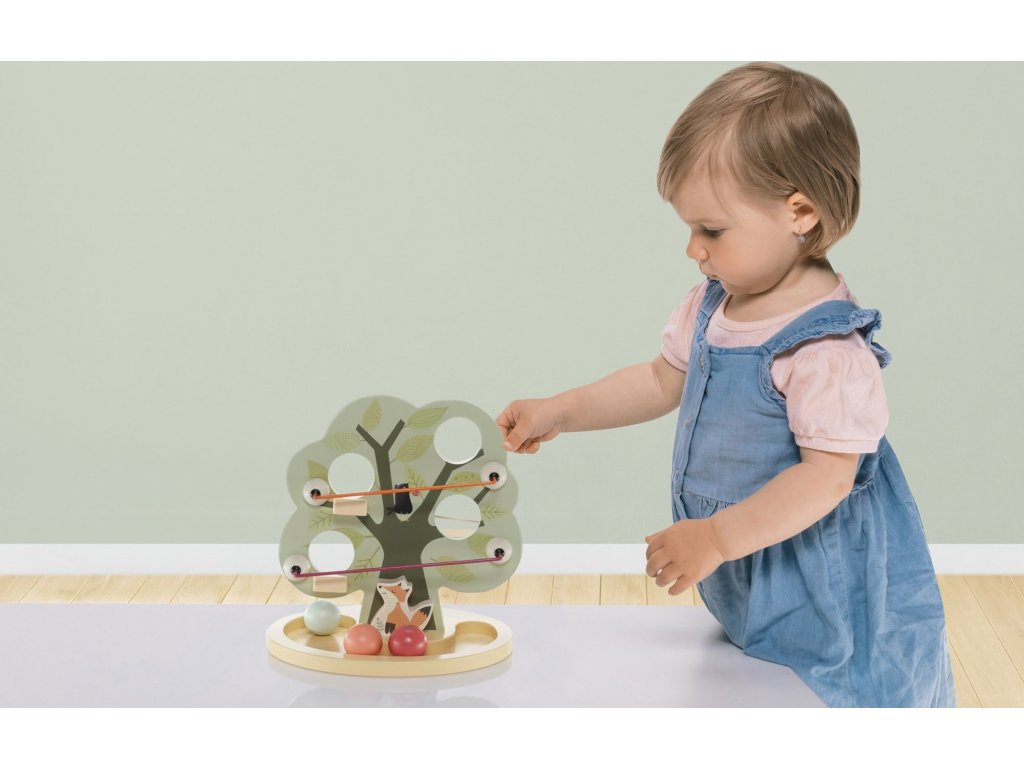 zachytává a dítě tak může pozorovat, jak kuličky padají. Hračka rozvíjí