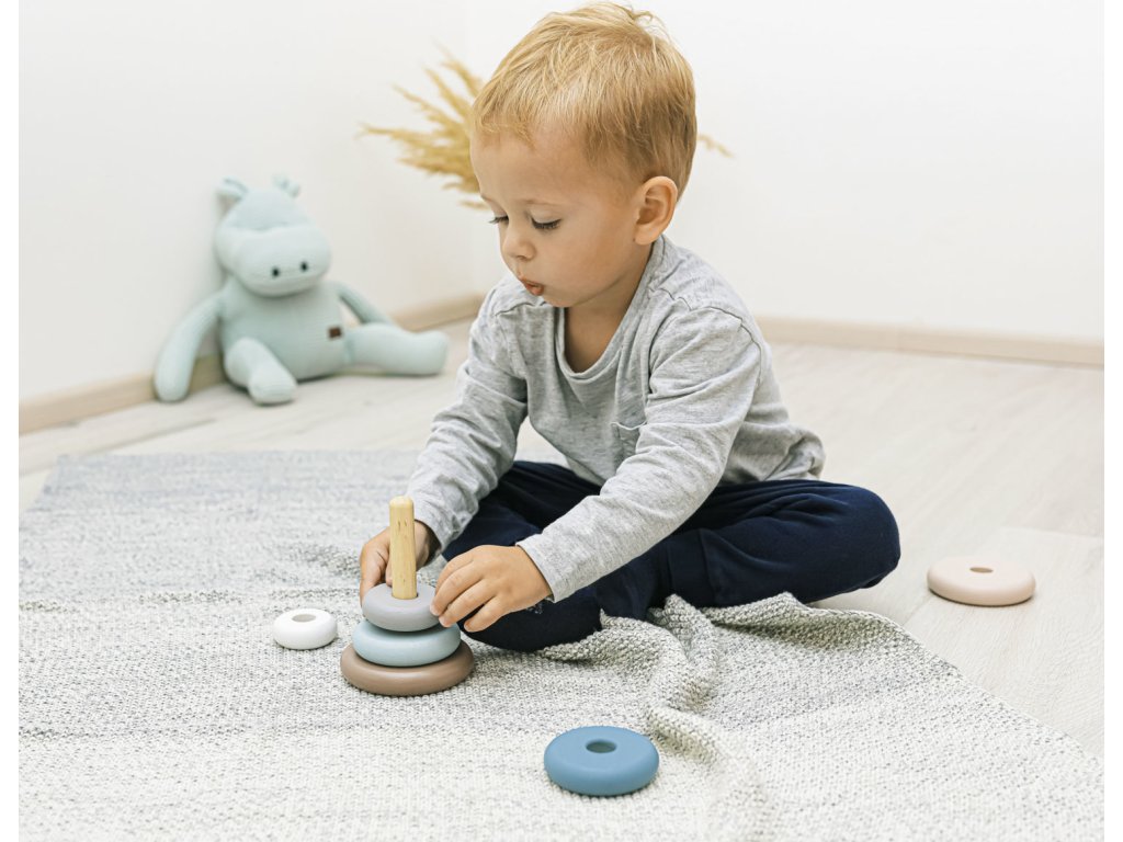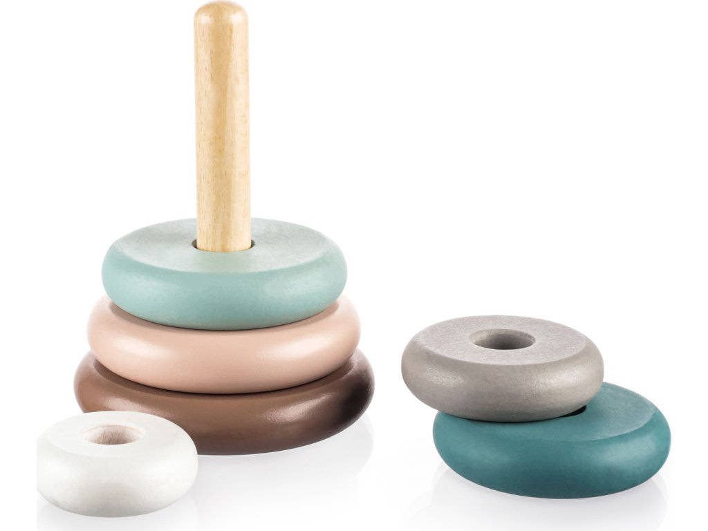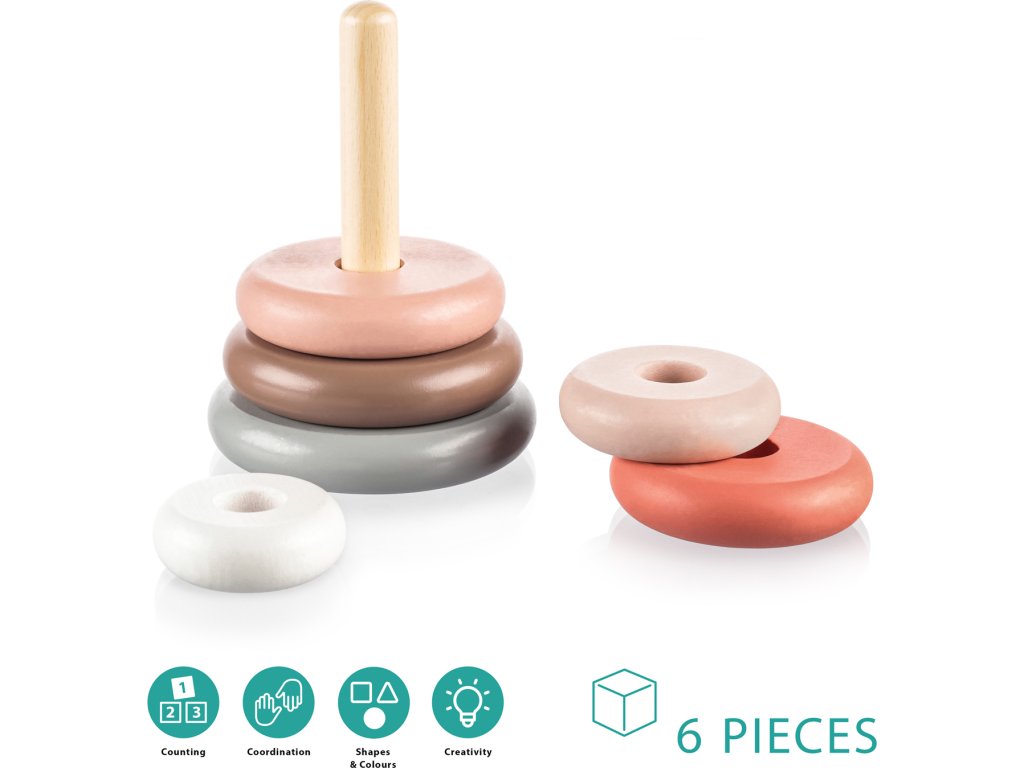 Skládání, rozkládání, třízení a desítky různých kombinací – to jsou dřevěné nasazovací kroužky pro zvídavé objevitele. Sada je složená ze 6 různě velikých kousků, které se mohou libovolně skládat na sebe.
