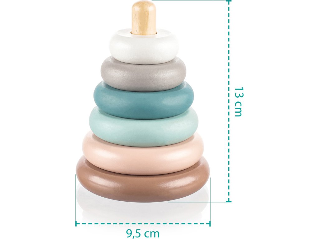 Dřevěné nasazovací kroužky pro děti od 16 měsíců.