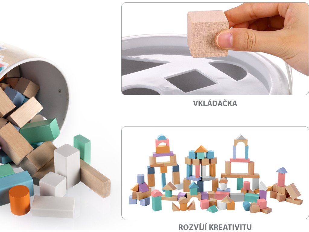 předměty. Kostky poskytují hodiny zábavy a podporují rozvoj kreativity,