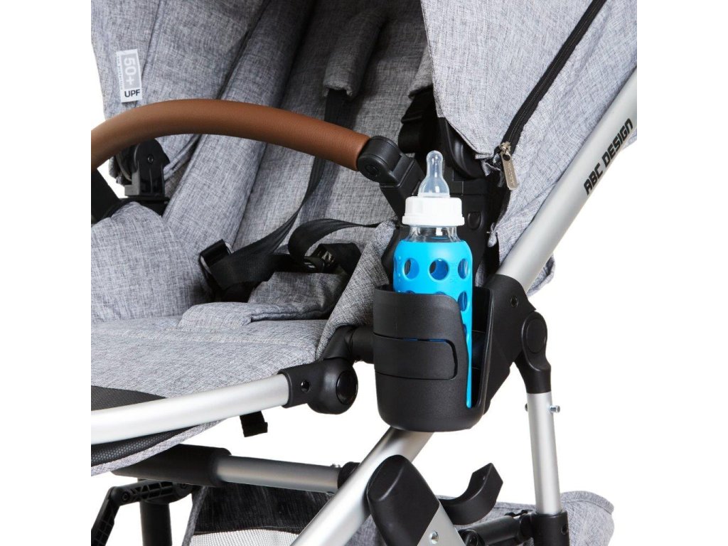 Univerzální držák nápojů ABC Design lze díky praktickému upevnění na suchý zip namontovat na téměř všechny běžné modely kočárků. Chytře navržený držák udrží láhve a kelímky o objemu až do cca 500 ml.