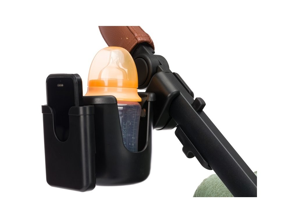 Tento univerzální držák na láhev s extra přihrádkou na smartphone je ideálním společníkem na cesty. Je vhodný pro všechny kočárky a lze jej snadno připevnit pomocí stavěcího šroubu.