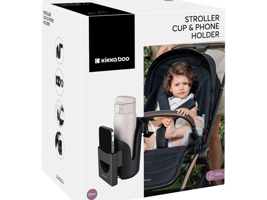 Držák na nápoj s přihrádkou na mobil KikkaBoo je praktický doplněk ke kočárku, který udrží nápoj i mobil vždy po ruce a vám nechá volné ruce na řízení kočárku. Díky nastavitelné poloze si držák otočíte do ideálního úhlu a univerzální uchycení s protiskluzovou gumou pevně drží na většině typů rukojetí.