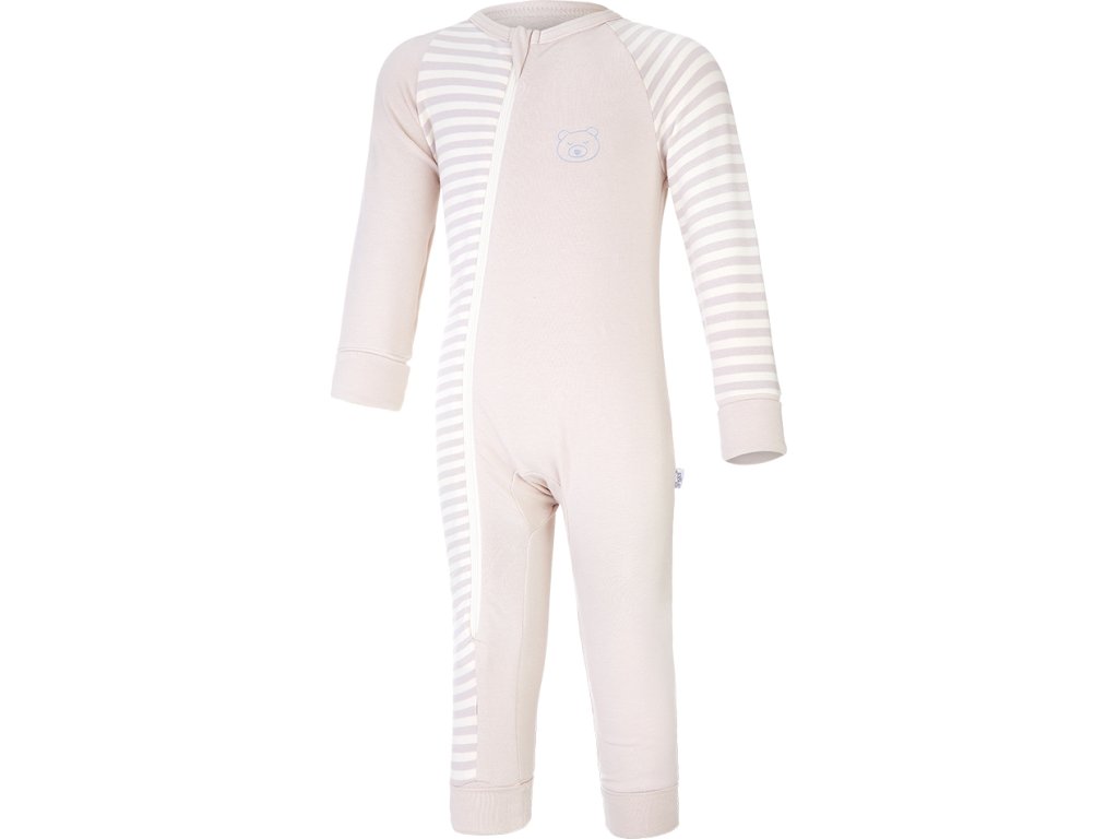 Pohodlný dětský overal z bavlněného úpletu a termoregulačního materiálu Outlast®. Overal má lemy na rukávech i nohavicích. Rukávy jsou dlouhé a mají široké náplety, které můžete v případě potřeby ohrnout a upravit tak délku rukávů a nohavic podle aktuální potřeby. Overal se zapíná na dlouhý zip, který usnadní oblékání. Po zapnutí lze jezdec zipu schovat do speciální krytky pod bradou a zabránit tak otlačení brady. Overal má uvnitř nažehlené etikety, které netlačí a nadráždí jemnou dětskou pokožku.