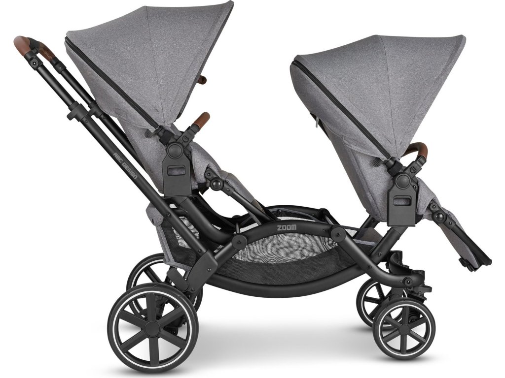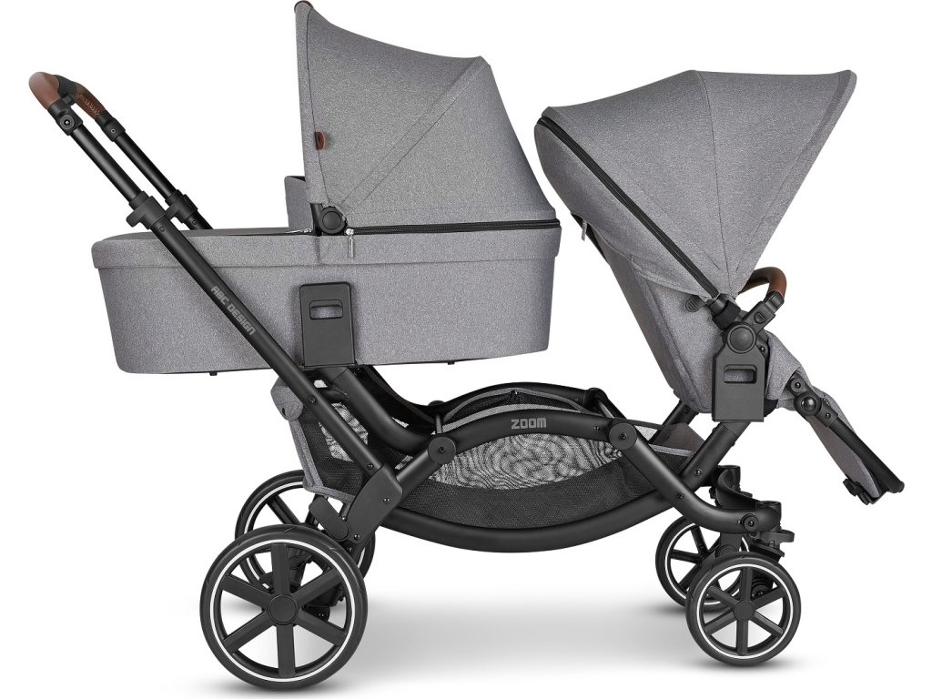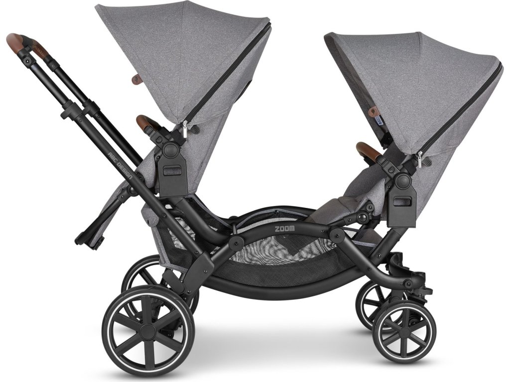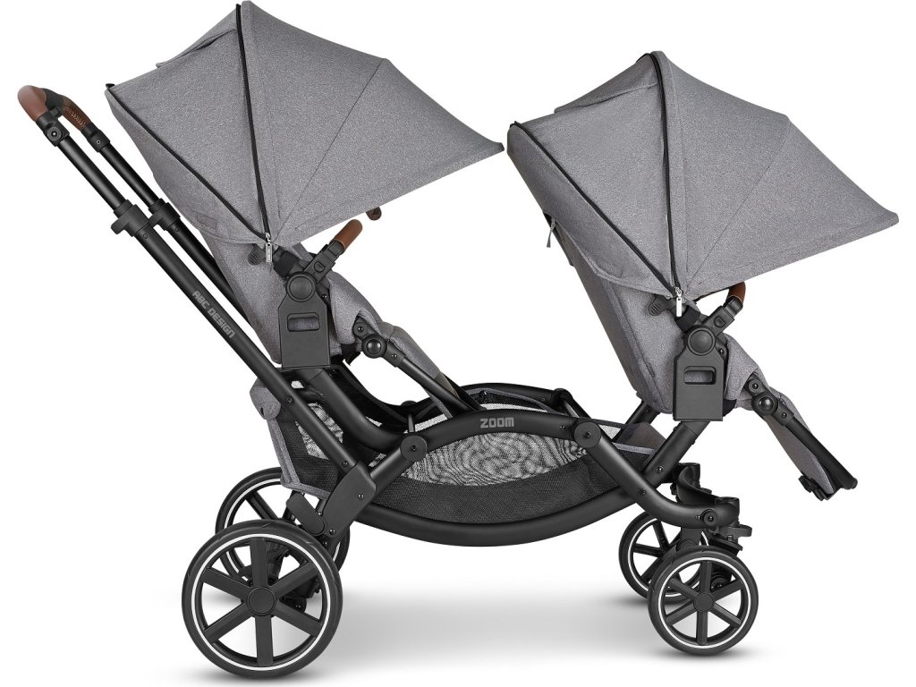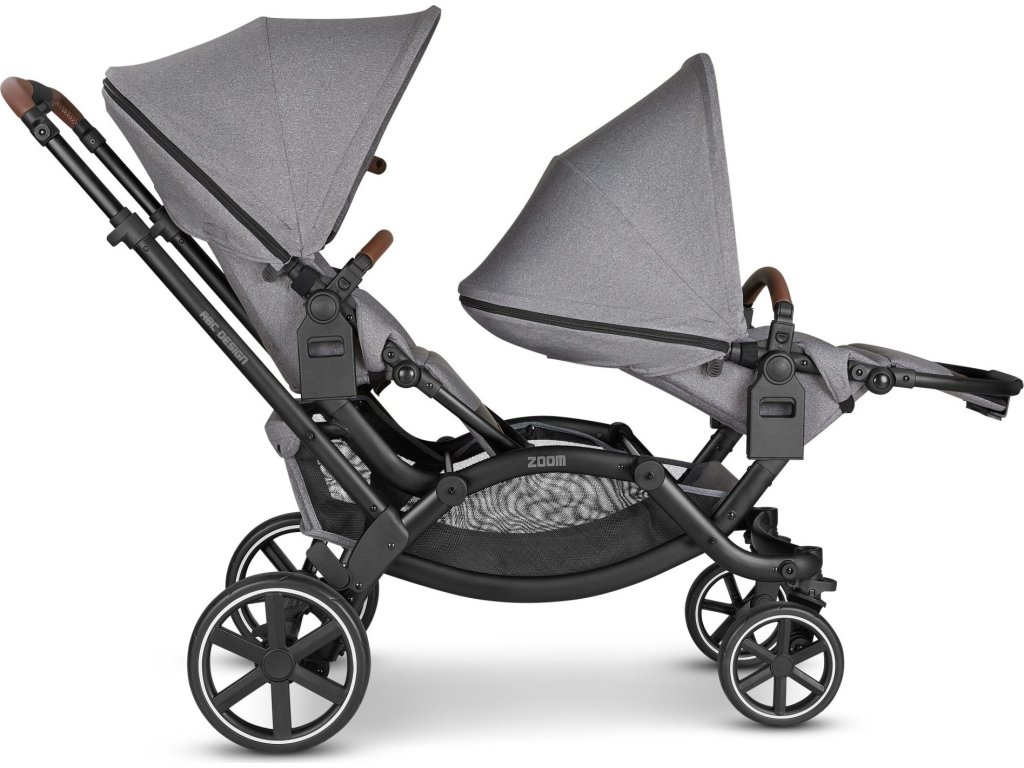 Dvojnásobné štěstí s sebou ale přináší také nové výzvy. Význam dětského kočárku v každodenním životě rodiny je tak důležitější než kdykoliv předtím. Kočárek Zoom vám pomůže zachovat si svobodu a flexibilitu, která je pro vás tak důležitá. Podle věku dětí můžete libovolně kombinovat sportovní nástavbu, korbičku a autosedačku. Díky otočným kolům je kočárek Zoom velmi snadno ovladatelný a jeho kompaktní design si skvěle poradí i s úzkými prostory. Pomocí několika pohybů jej lze proměnit na cestovní systém a nebo složit do minimálních rozměrů. Pro vaše děti bude kočárek Zoom tím nejkrásnějším místem, odkud budou moci společně objevovat svět. Během jízdy se na sebe mohou dívat, společně se smát, pozorovat vás nebo jen tak sedět a zkoumat okolní svět.