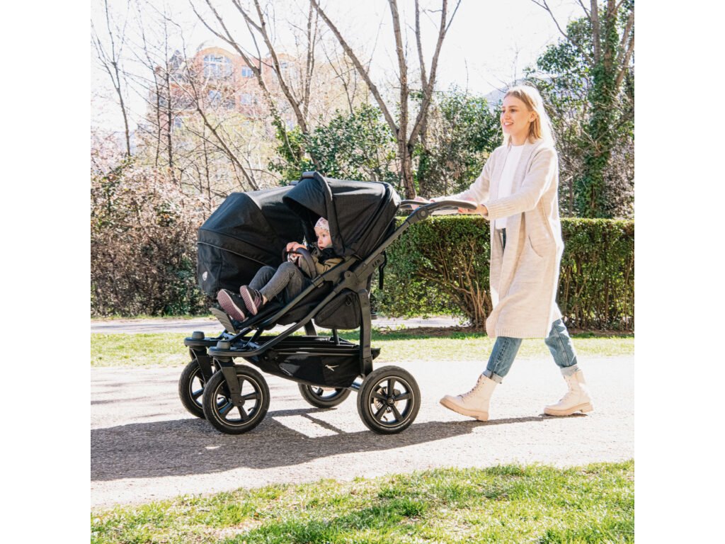 Konstrukce kočárku duo2 je větší, lehčí, odpruženější, lépe ovladatelná. Snadno na ni nacvaknete nový model hluboké korby duo2 combi, nebo sportovní sezení stroller seats duo2. Lze mít separátně dvě korby, nebo dva sedáky pro dvojčátka, anebo kombinaci korba a sedák pro sourozence.