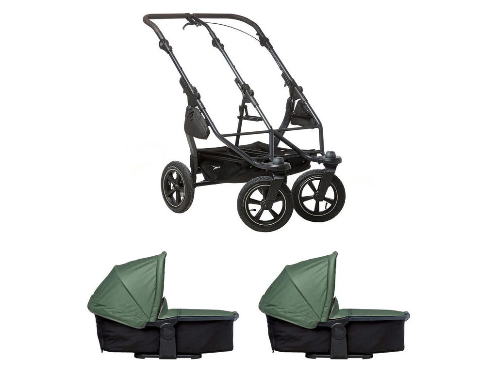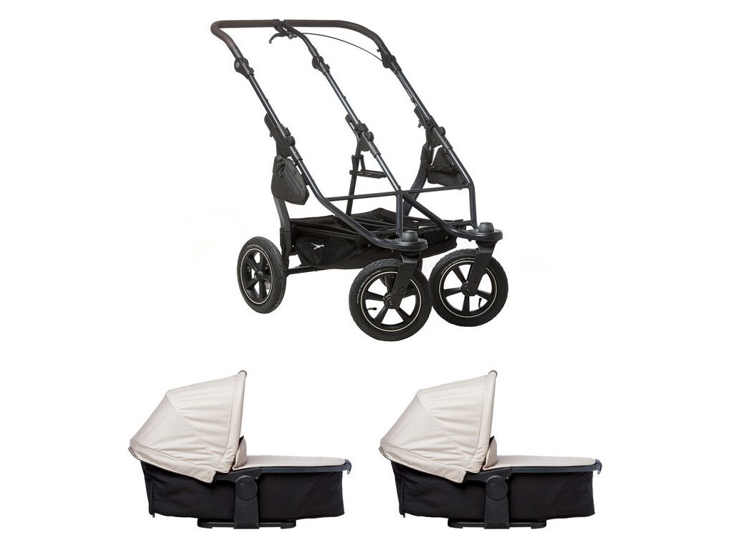 Konstrukce kočárku duo2 je větší, lehčí, odpruženější, lépe ovladatelná. Snadno na ni nacvaknete nový model hluboké korby duo2 combi, nebo sportovní sezení stroller seats duo2. Lze mít separátně dvě korby, nebo dva sedáky pro dvojčátka, anebo kombinaci korba a sedák pro sourozence.