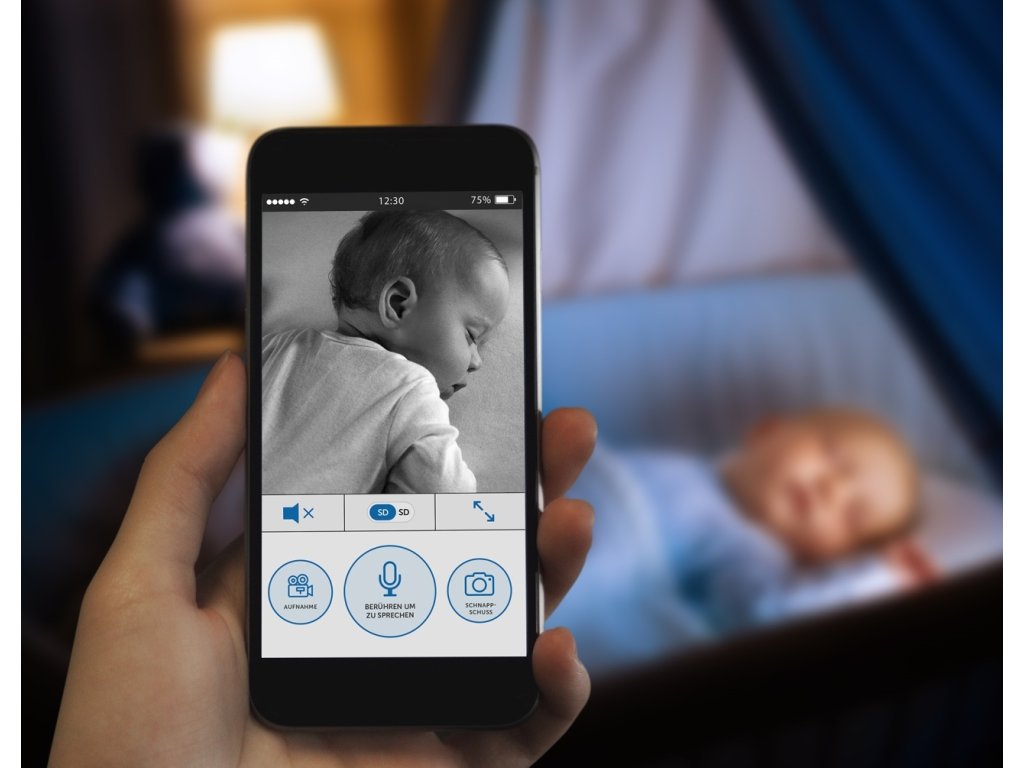 Chcete-li mobilní zařízení používat jako rodičovskou jednotku pro IP BabyCam, musíte nejprve stáhnout bezplatnou aplikaci v závislosti na operačním systému v App Store nebo Google Play. Po několika kliknutích je IPCam a vaše zařízení připojena a přenos může začít. Ve smartphonu můžete také spárovat více kamer. Fotoaparát může data odeslat několika mobilním zařízením. Například, prarodiče mohou sledovat jejich milý malý klidně spinká.