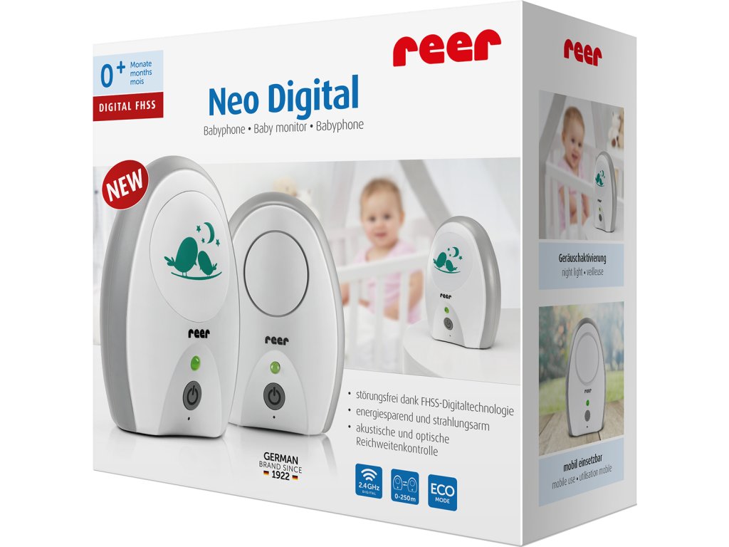 Digitální dětský monitor Neo sleduje dokonale propojenou kombinaci dětské a rodičovské jednotky se spícím dítětem. Díky technologii Frequency Hopping Spread Spectrum (FHSS) je zaručeno bezproblémové a křišťálově čisté spojení. Díky automatické změně pravidelných kanálů je systém Neo digital 100% odolný proti odposlechu.