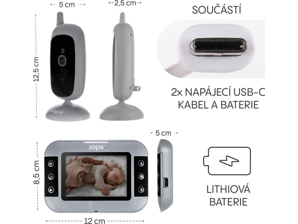 dětská, jsou vybaveny lithiovými bateriemi s USB-C nabíjením. K provozu chůvičky