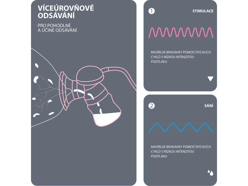 ale také vám dovolí odsávat v noci vedle spícího dítěte. Velkou výhodou je