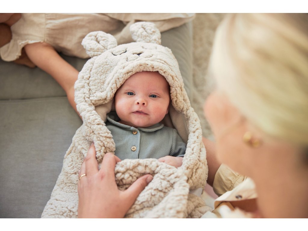 Zavinovačka z měkoučkého fleecového materiálu umožňuje snadno a rychle miminko zabalit a zajistit mu pocit bezpečí, tepla a pohodlí. Kapuce zajistí teplo na hlavičku i při spaní dítěte v chladnějším prostředí. Zavinovačka se zapíná s pomocí suchých zipů.