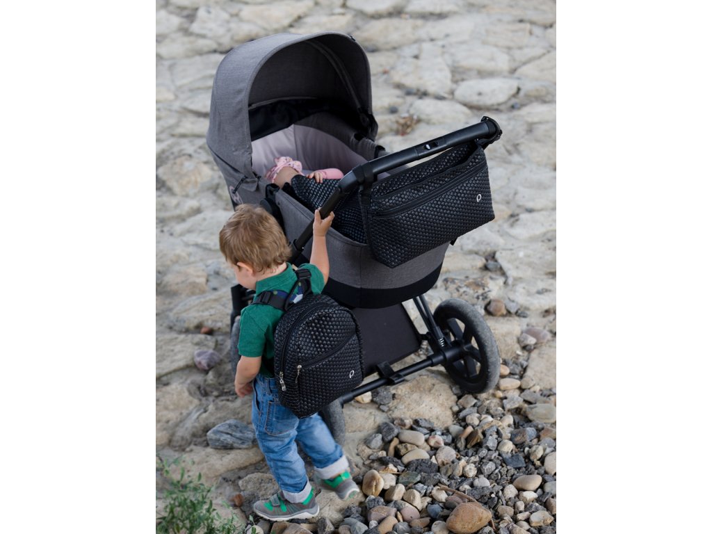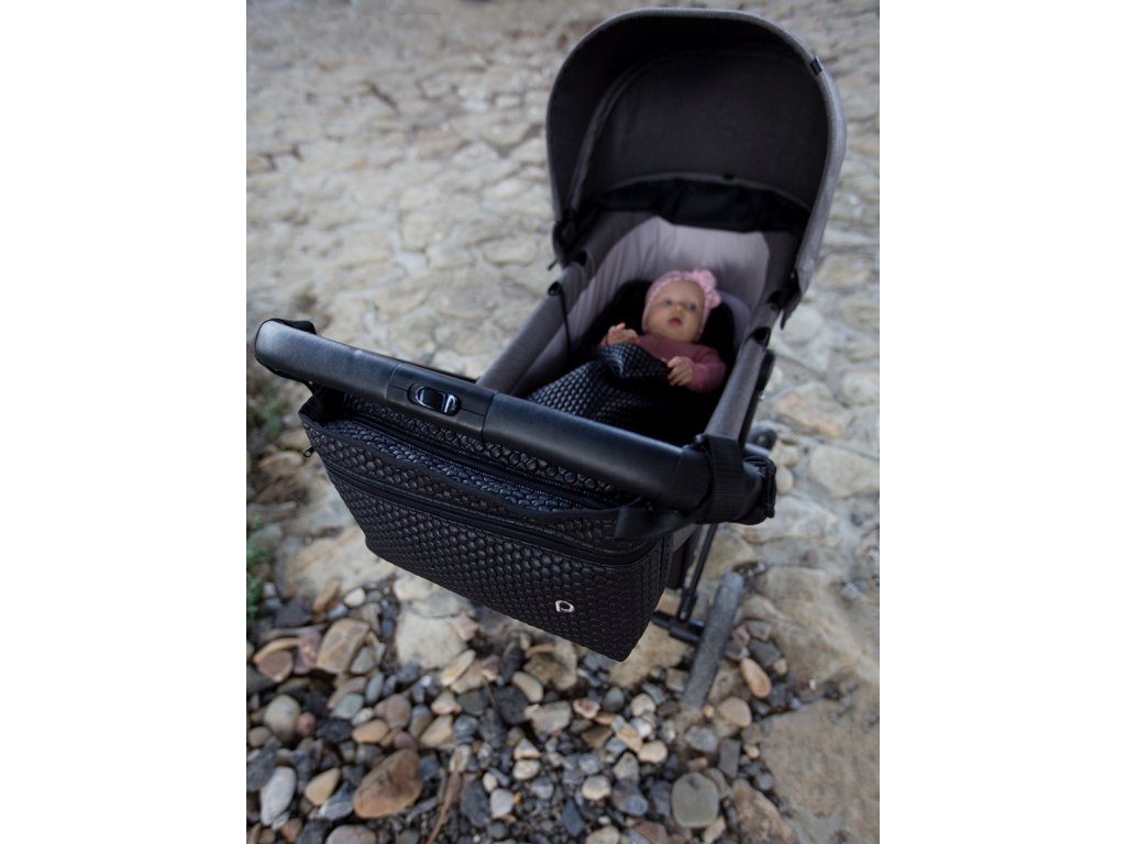 Otvory pro popruhy. Možnost použití v autosedačce, postýlce nebo hluboké korbičce.