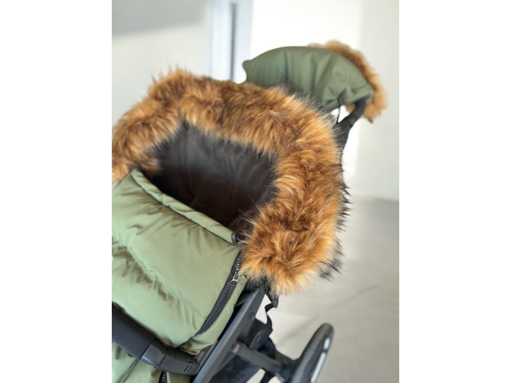 Fusak je ušit z funkčního voděodolného softshellu. Je ozdoben kvalitní nadýchanou kožešinou nově v té nejvyšší kvalitě, kterou je možné odepnout (k fusaku je připevněna pomocí druků).