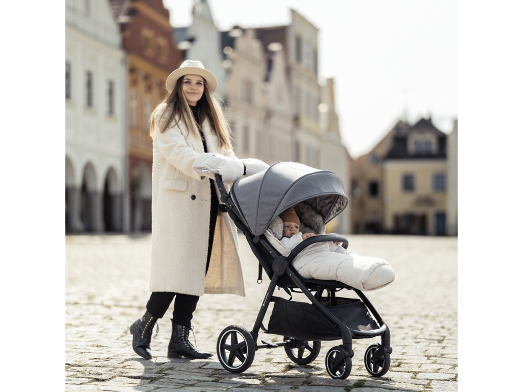 - 4v1 – odepnutím spodní části změníte velikost fusaku na menší, který se hodí i do vaničky nebo autosedačky, a připevněním kožešinky – získáte ochranu proti větru.