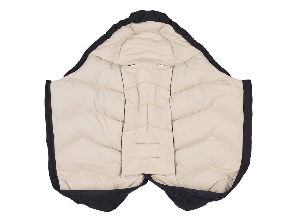 - po odklopení zadní části fusaku jednoduše provléknete pásy autosedačky a snadno jej k ní připevníte